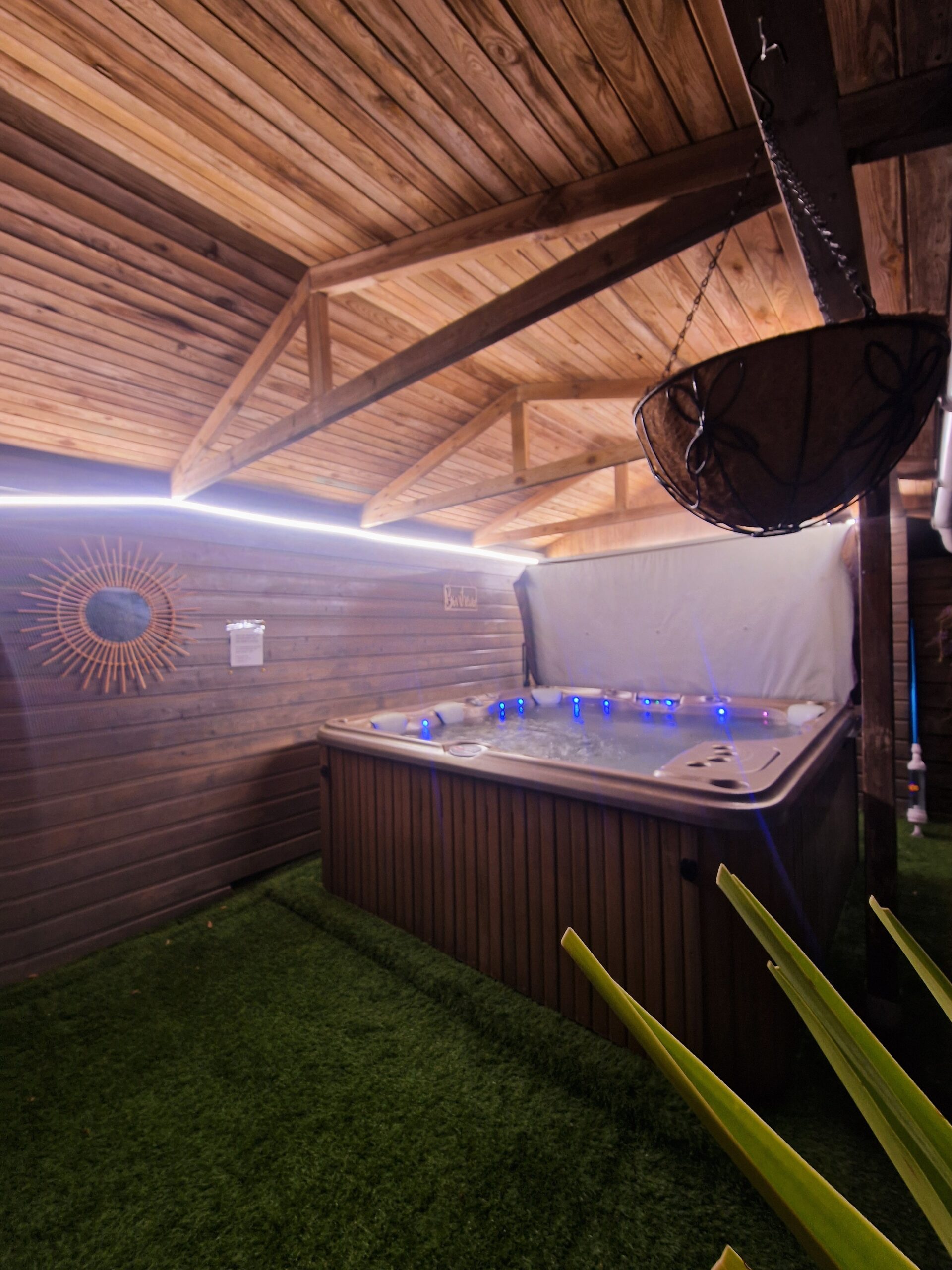 Un grand SPA d’extérieur 5/6 personnes utilisable toute l’année.