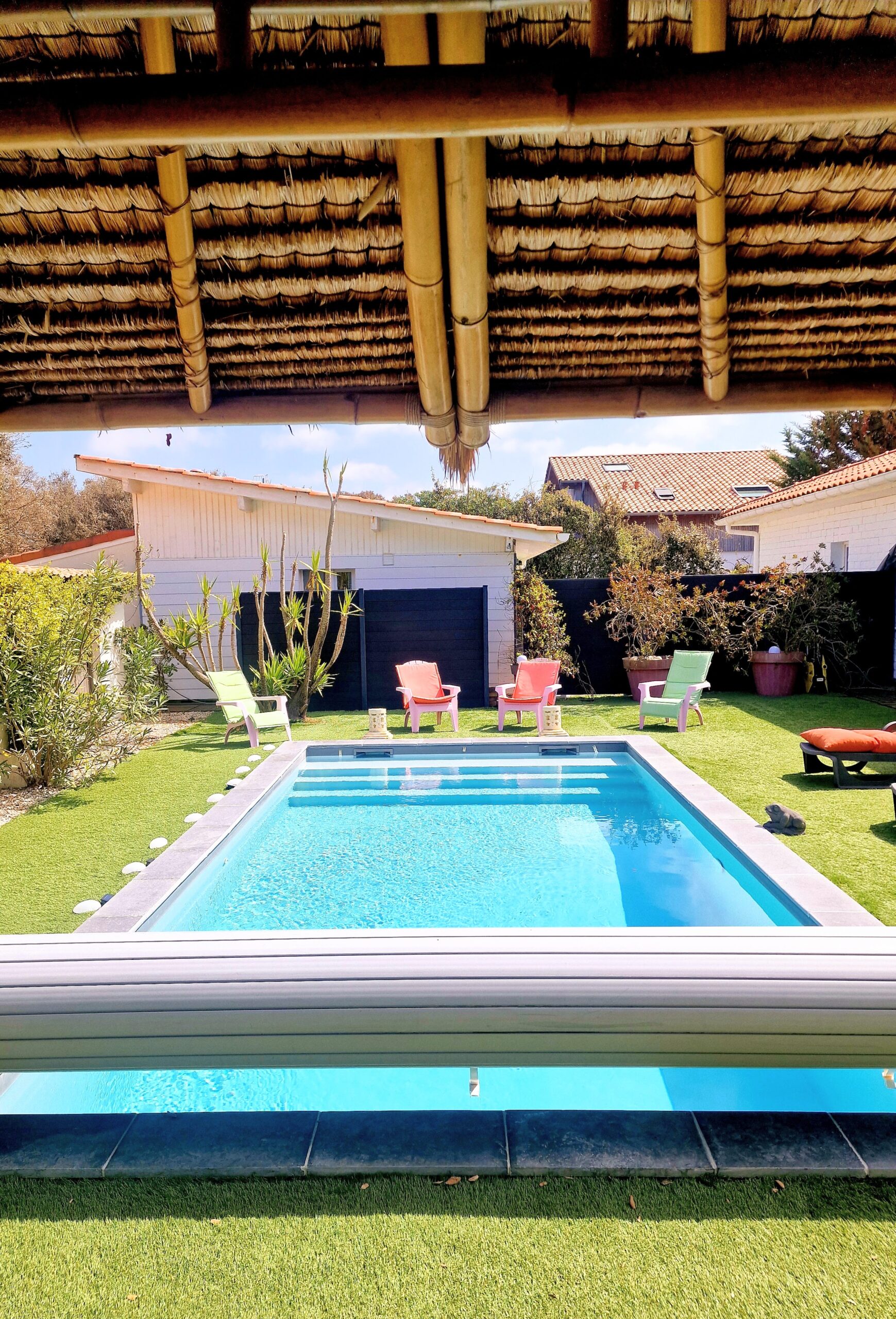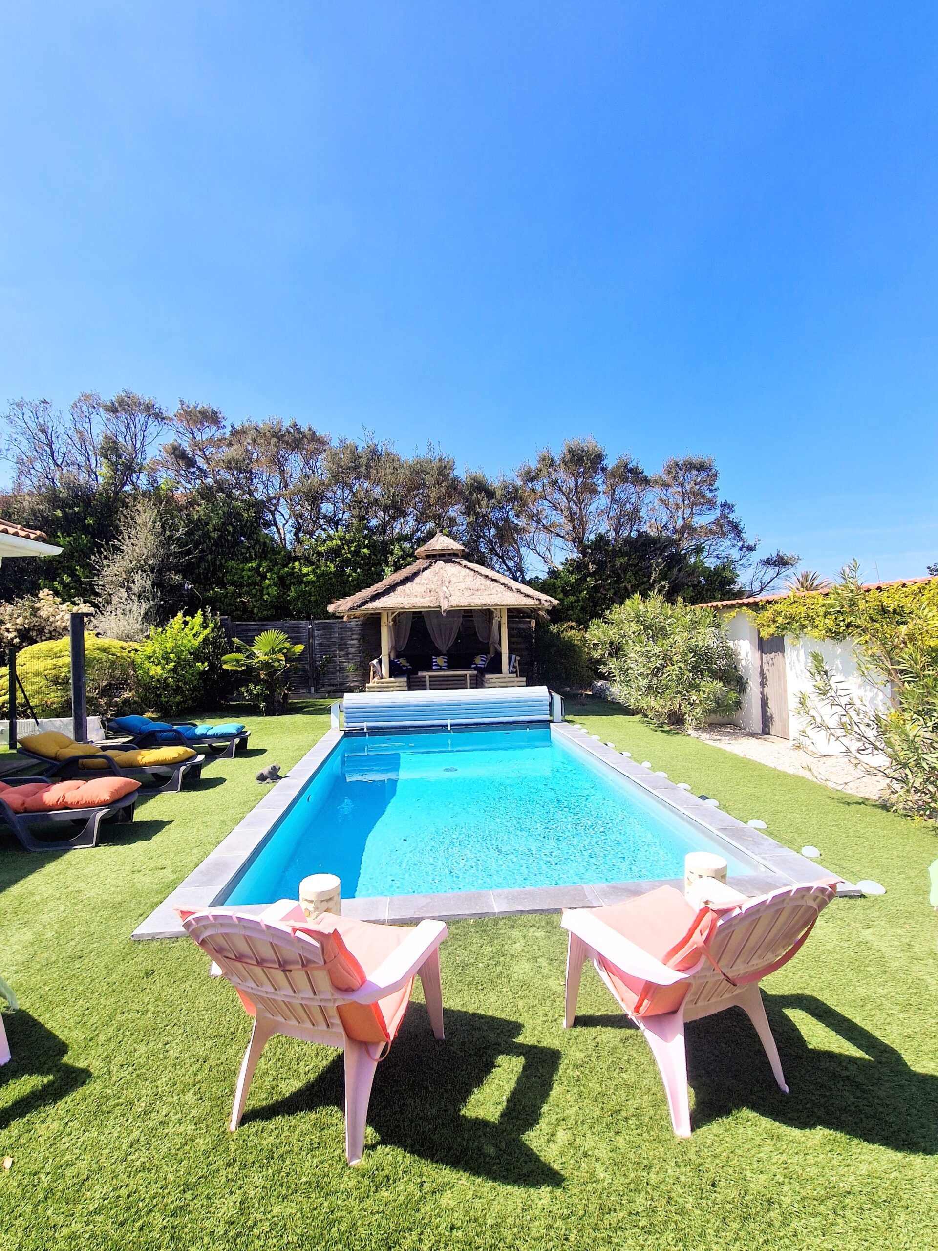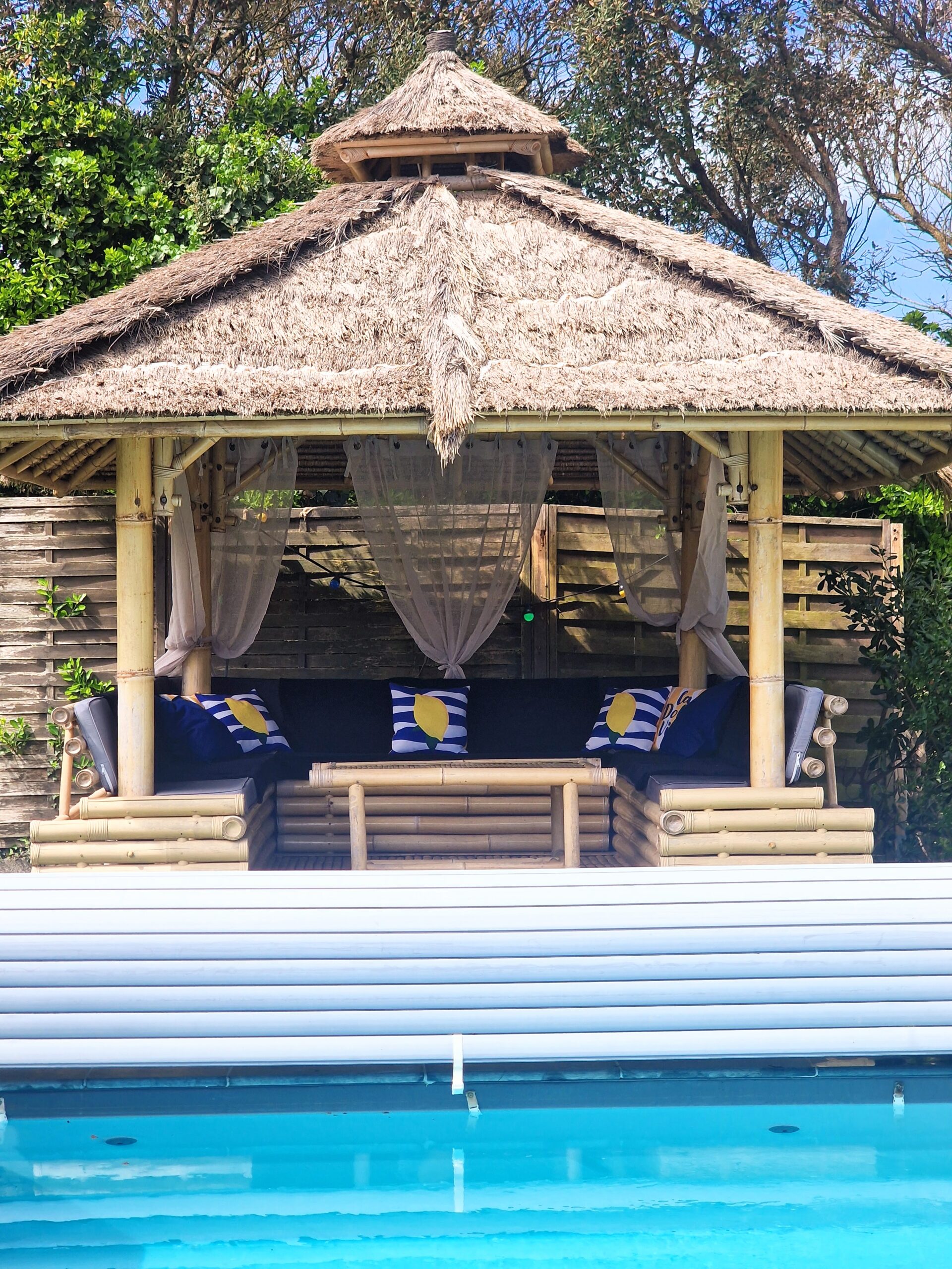 Le gazébo balinais finira de vous détendre après un plongeon dans la piscine chauffée du 29/03 au 3/11 ( 7m/4m ) entièrement sécurisée ( volet et portillon )