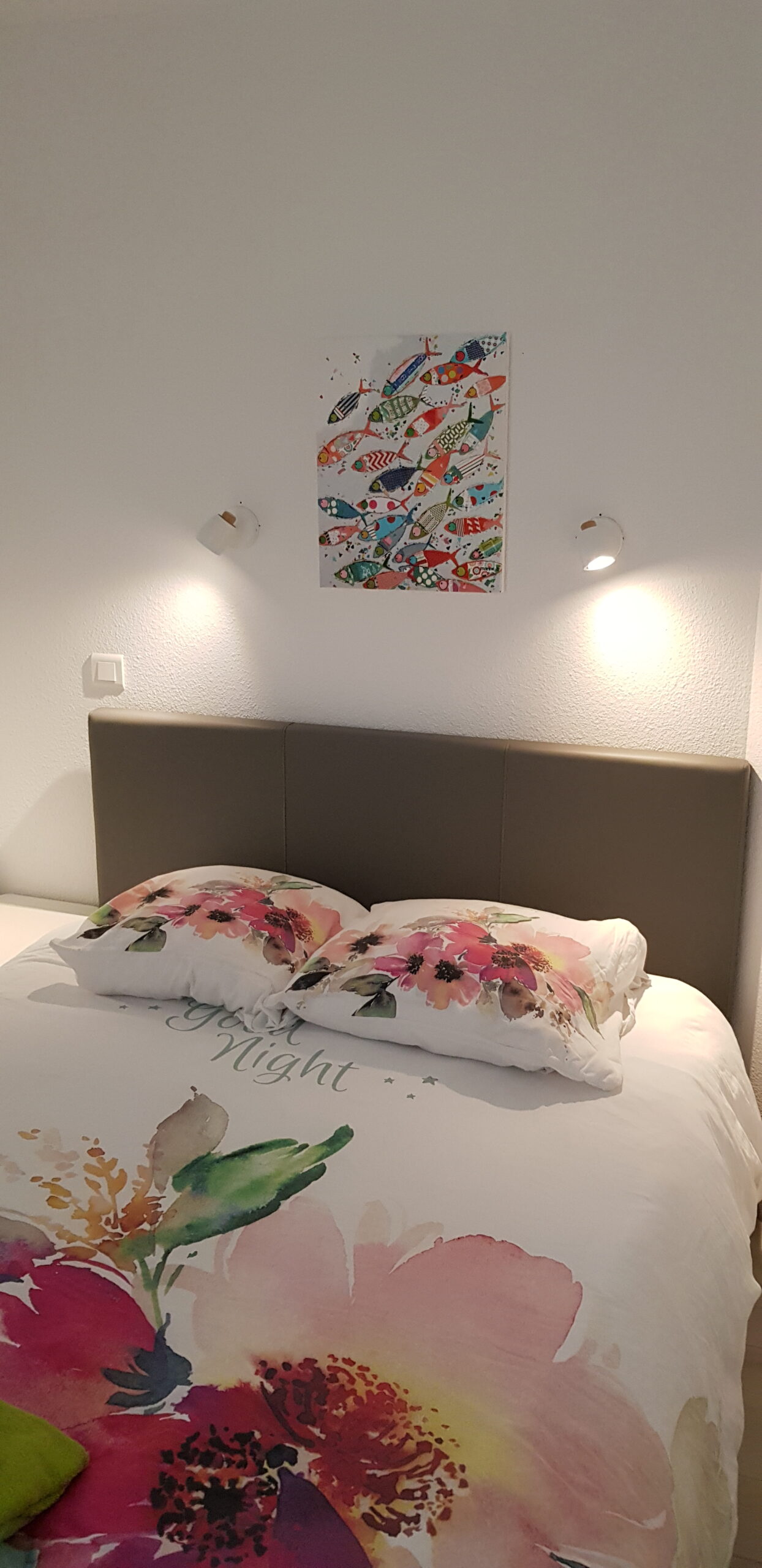 Appartement chauffé dans une résidence les pieds dans l’eau au Cap Coz. Cuisine aménagée avec coin salon. Une chambre avec 1 lit double, salle de bain et WC séparés. Résidence fermée et sécurisée. Place de parking privative. Un dépôt de garantie d’un montant de 200€ non encaissé sera demandé à l’arrivée.