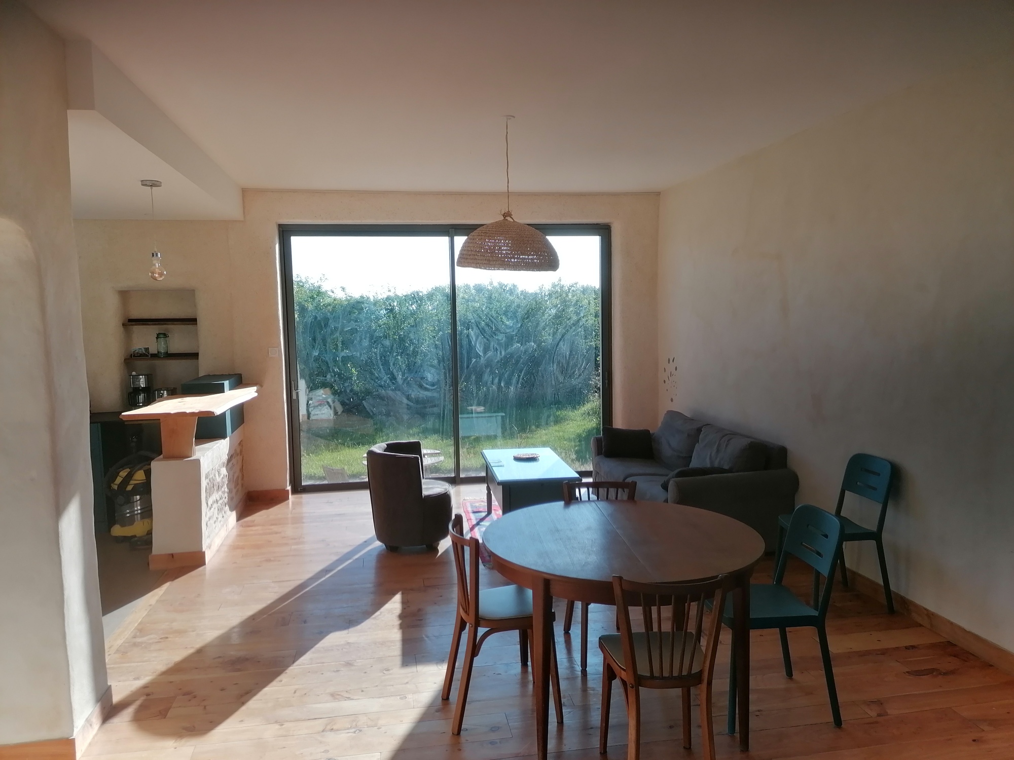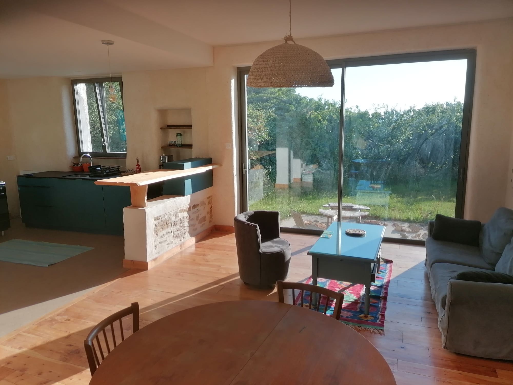 Ambiance paisible dans une atmosphère naturelle, parfaite pour se ressourcer, faire du sport et/ou télétravailler. Toute la maison est très lumineuse, je l’ai isolée avec du chaux chanvre et de la laine de bois et conçue pour profiter au maximum des énergies naturelles.