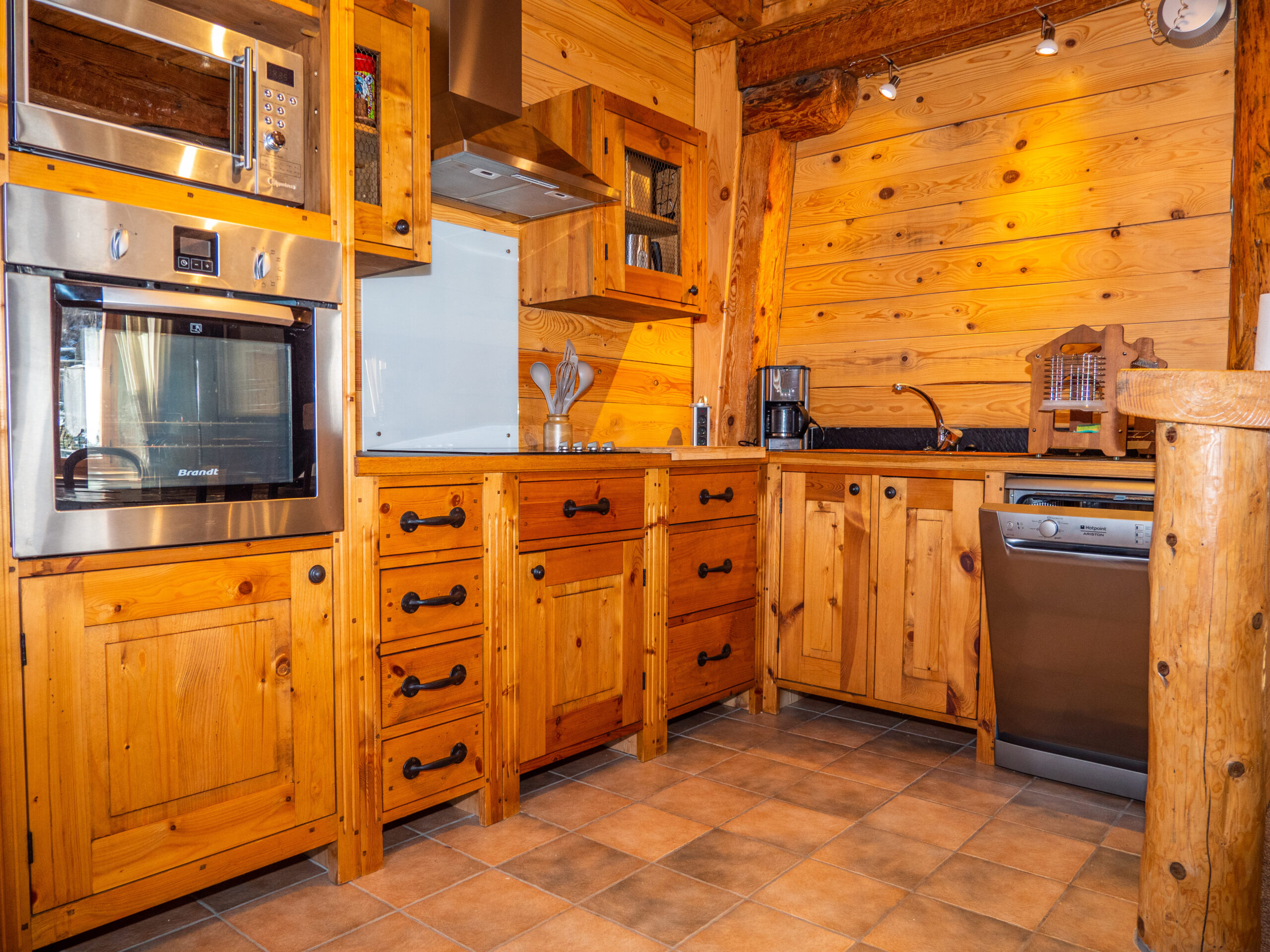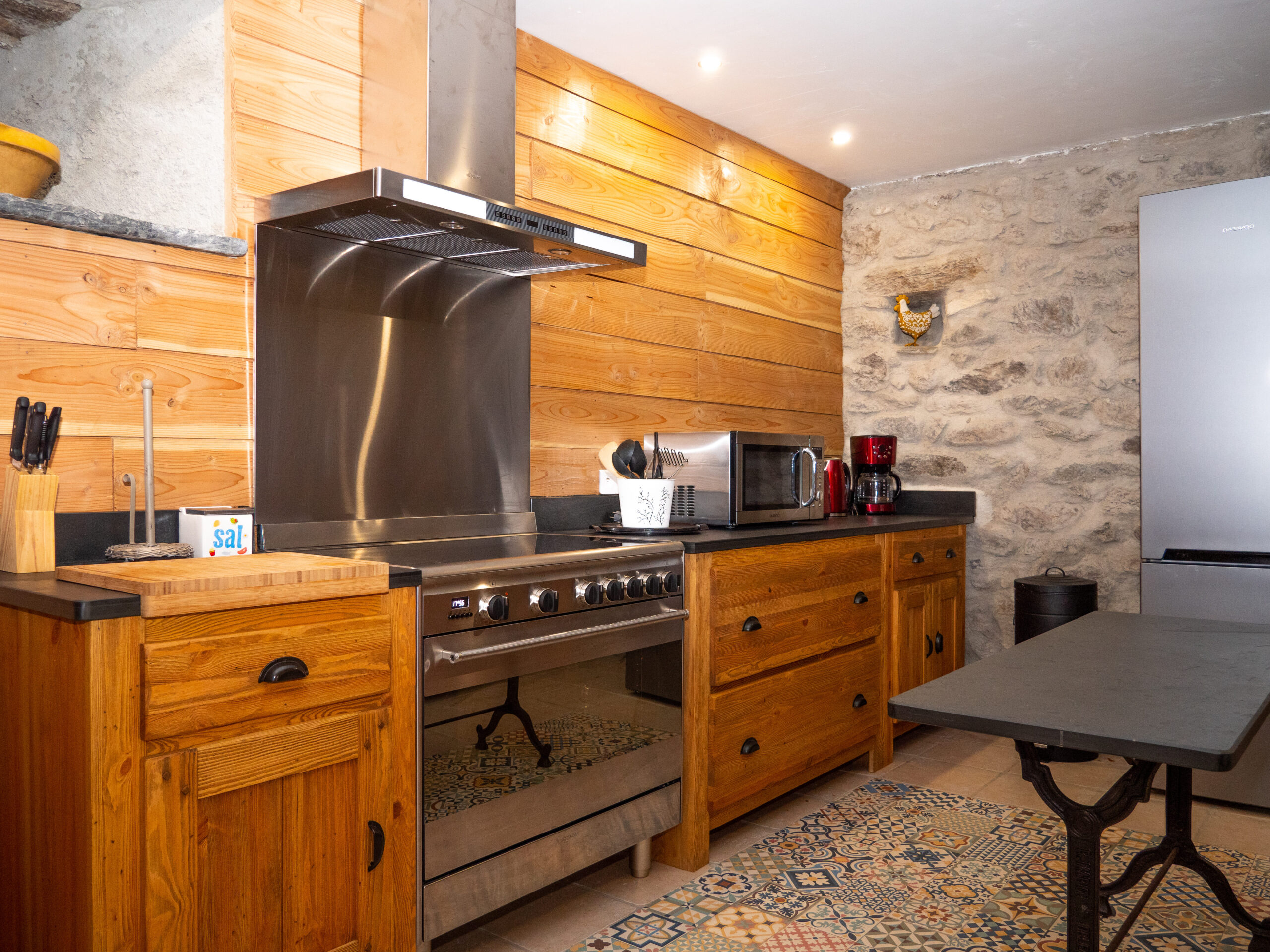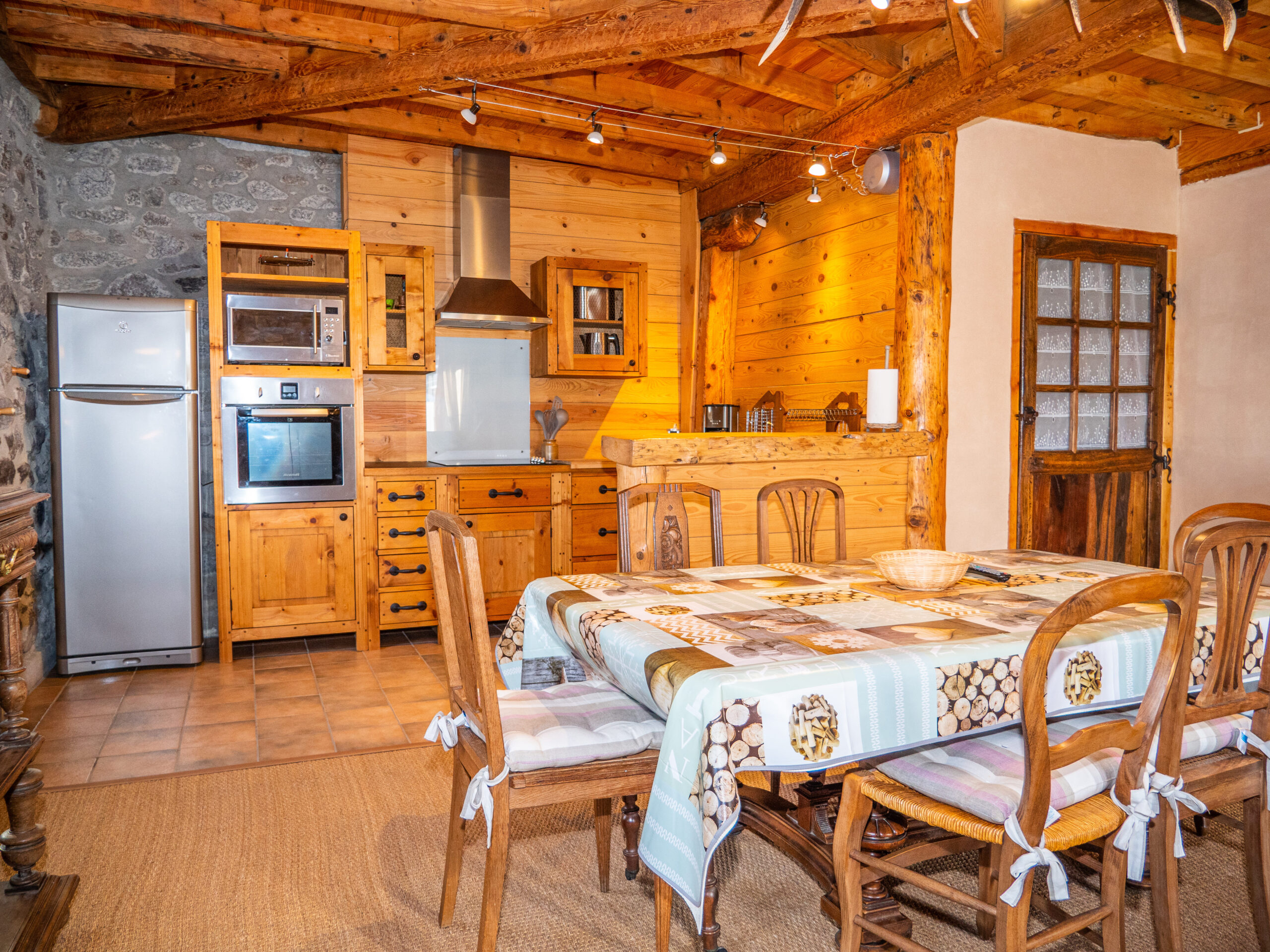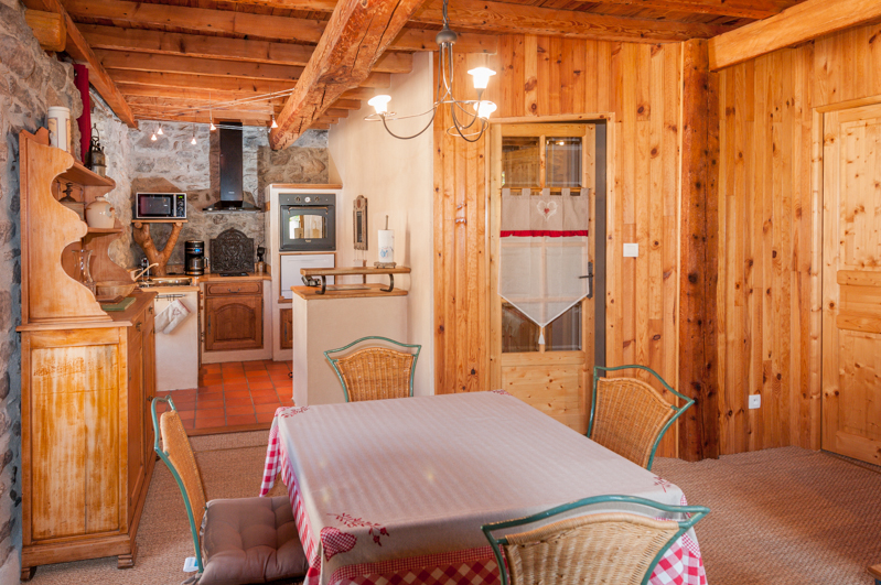 Le rez-de-chaussée fait office de véritable lieu de vie et de convivialité en vous offrant une salle à manger- salon très spacieuse, agrémentée d’une grande table qui vous promet de touchantes retrouvailles autour d’une raclette ou d’un jeu de société au coin d’un feu de bois qui crépite dans la cheminée! Vous disposez également d’une cuisine attenante spacieuse, équipée d’un piano de cuisson (5 feux + 1 four de 115 litres).