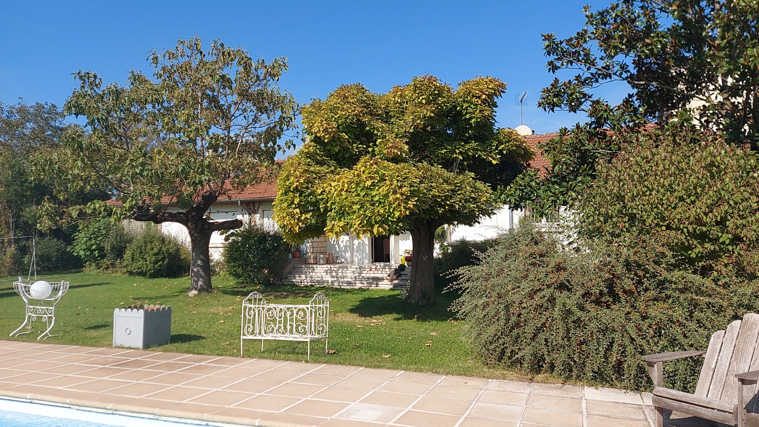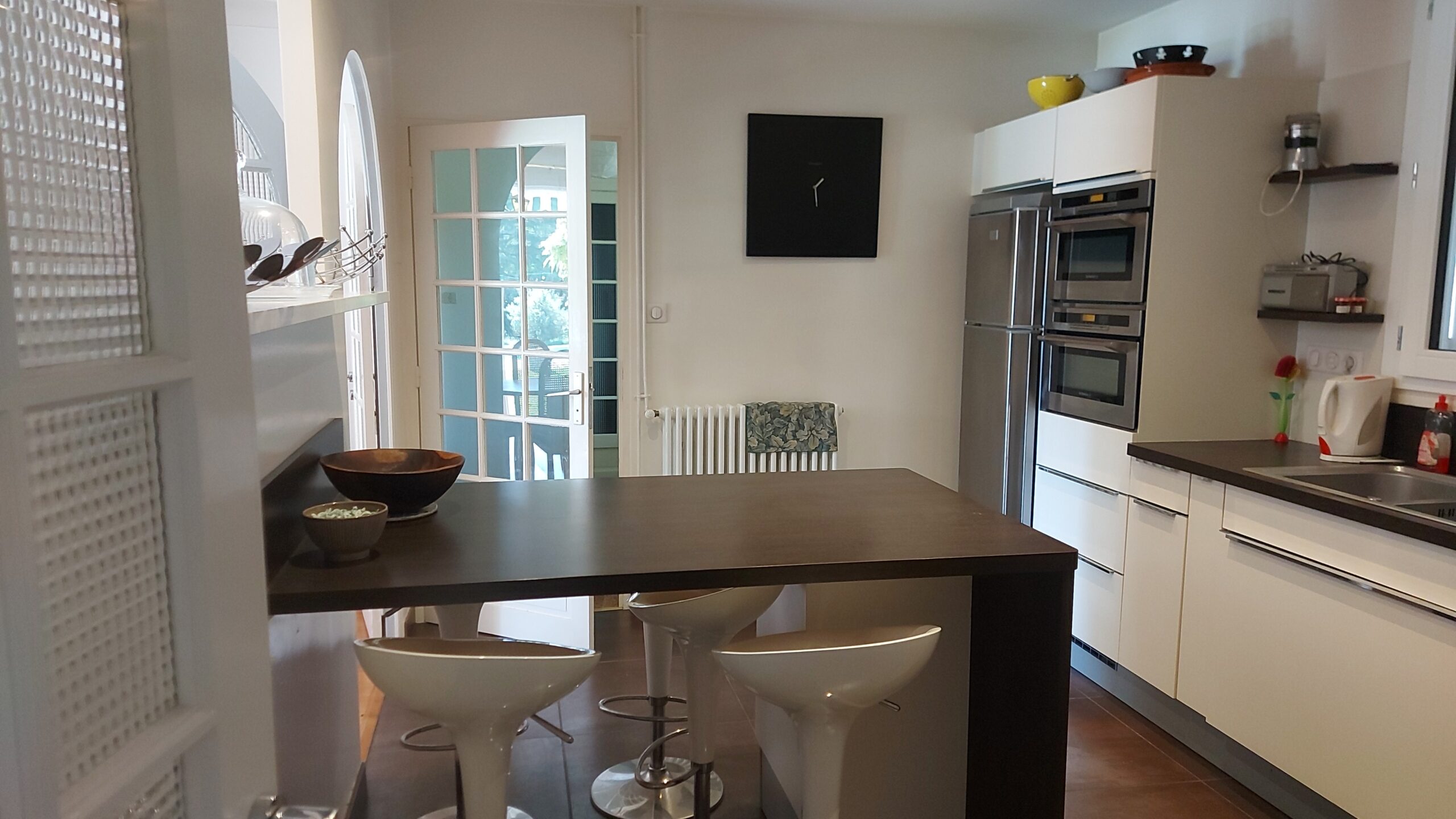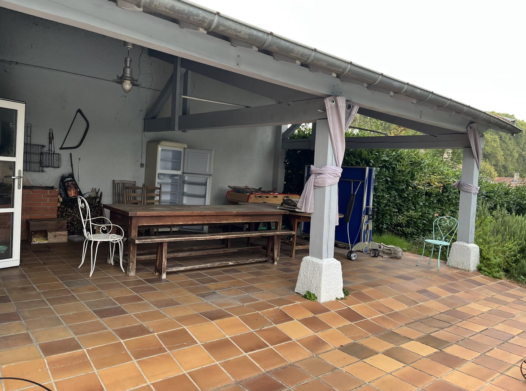 Terrasse ombragée et cuisine d’été avec BBQ et tous les équipements nécessaires.