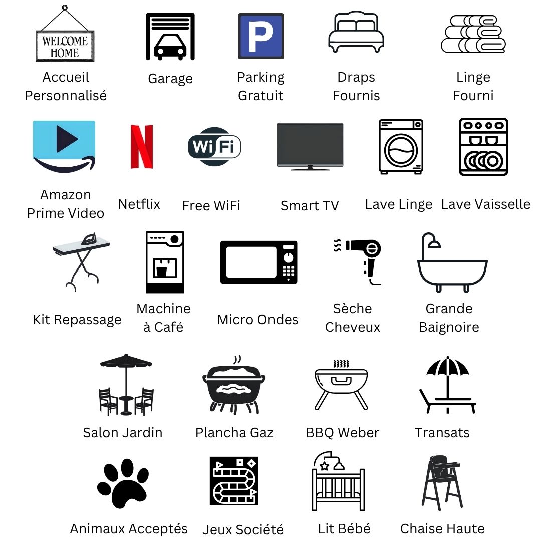 âą Jardin clos et arborĂ© de 400 mÂČ avec barbecue Weber, plancha Campingaz, transats pour vos moments conviviaux.