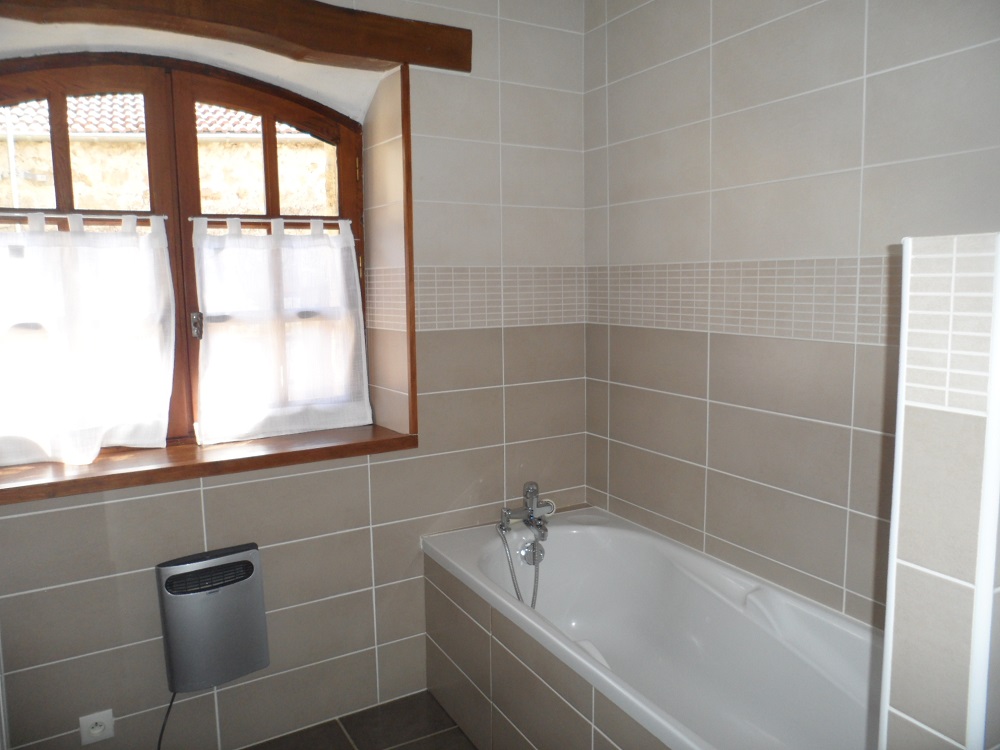 Une salle de bain avec douche italienne, vasque et baignoire. WC séparé.