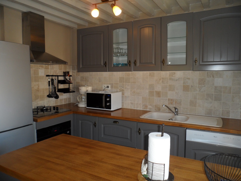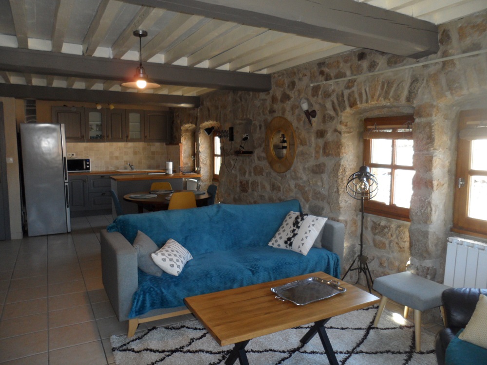 Le gîte est composé d’une grande pièce avec cuisine équipée, coin repas et salon avec grande télévision écran plat.