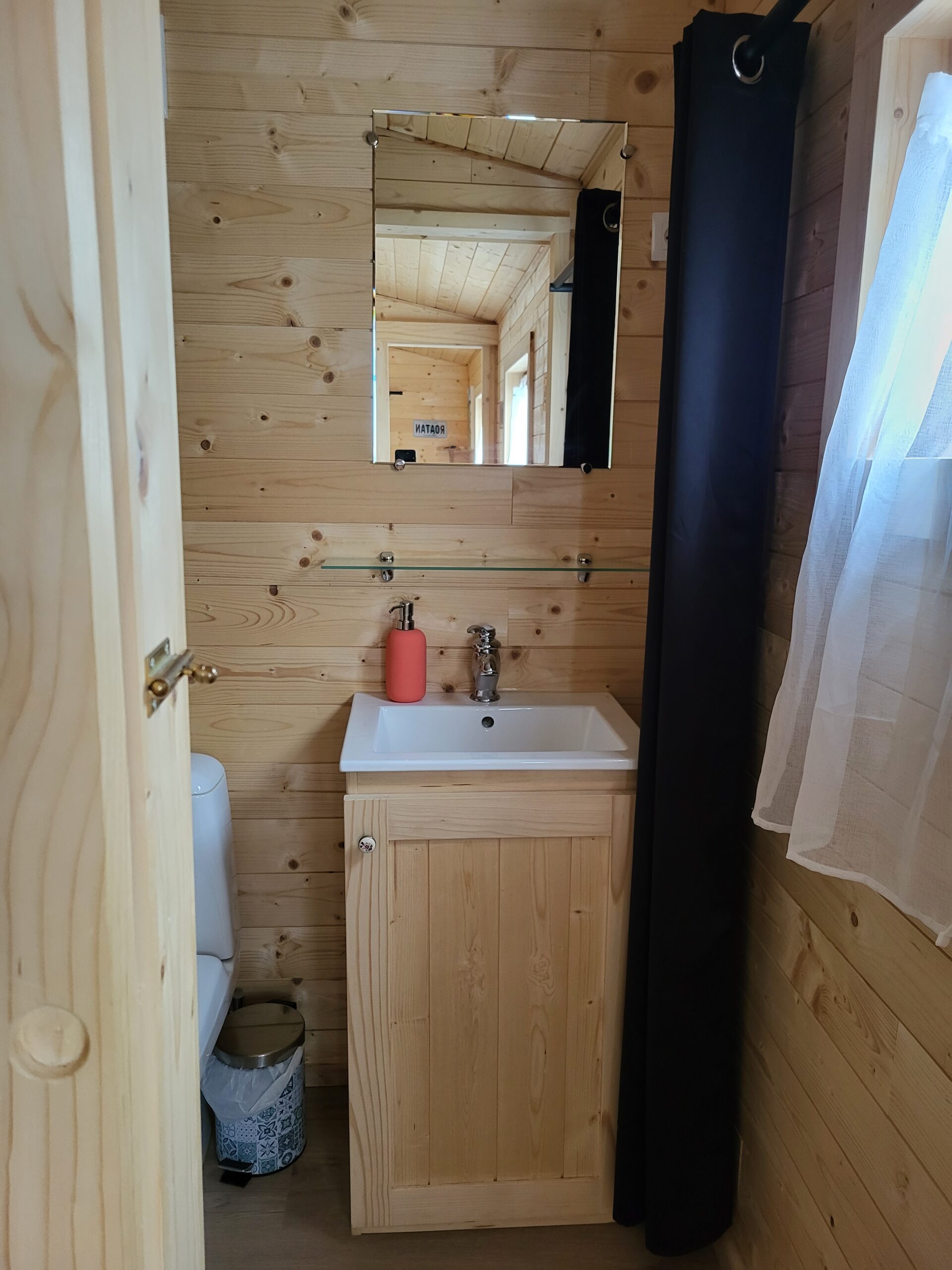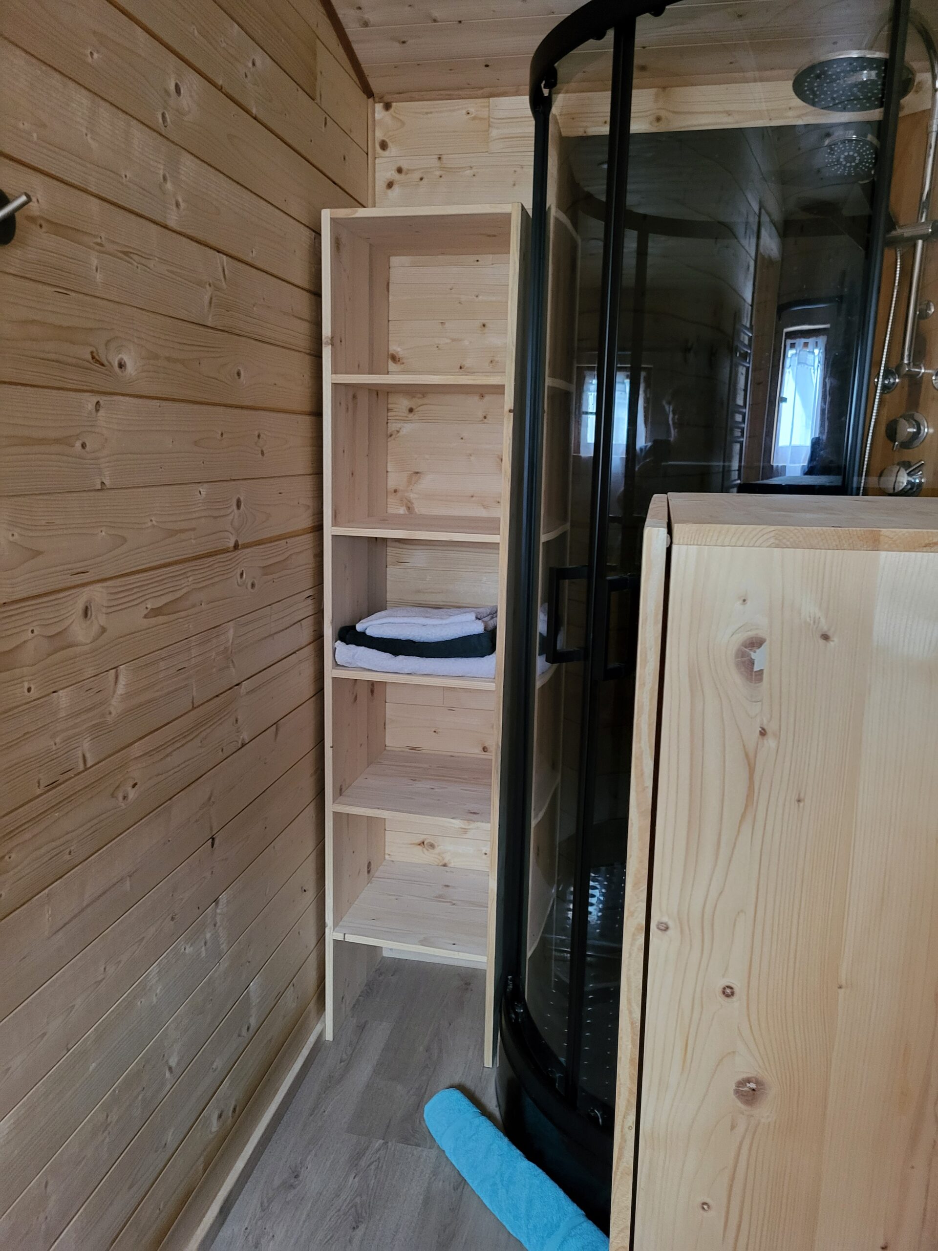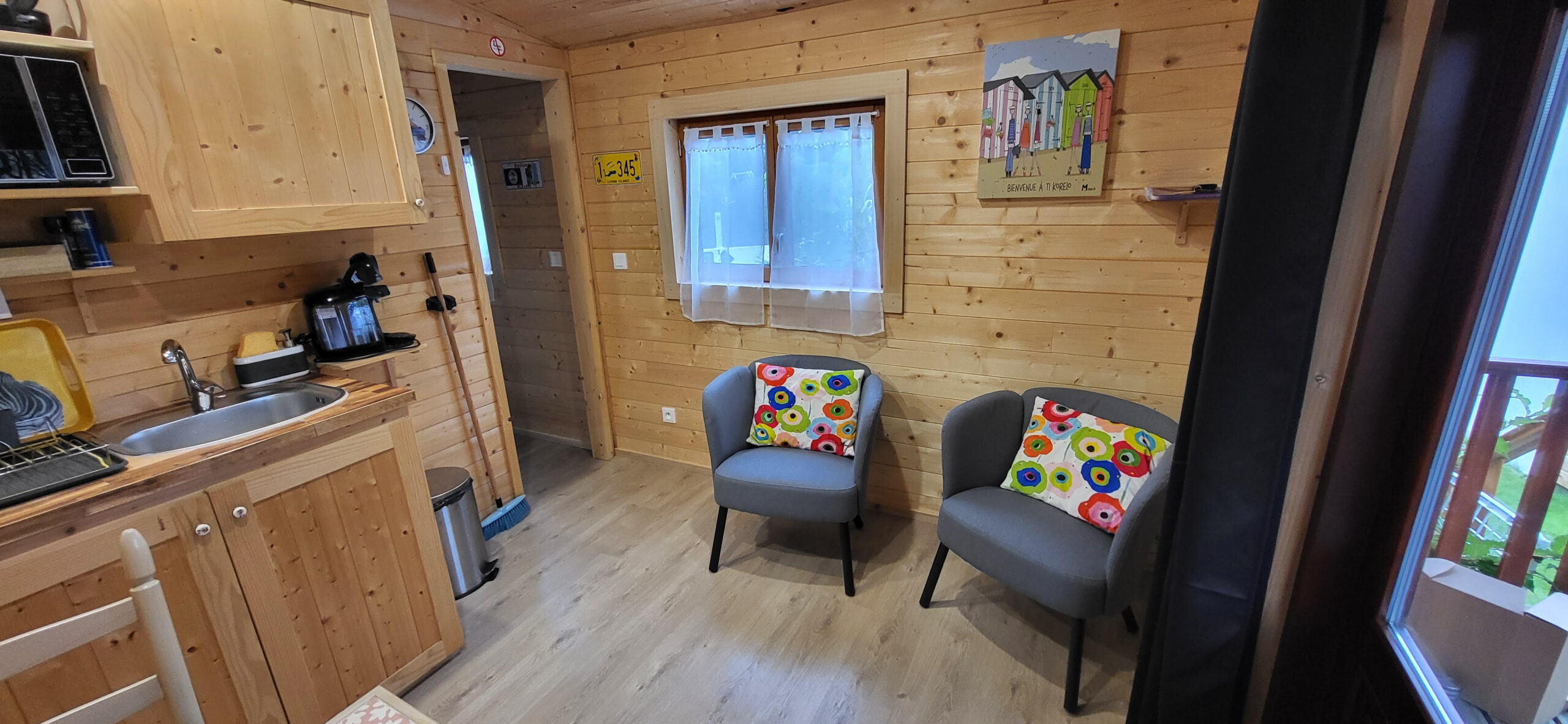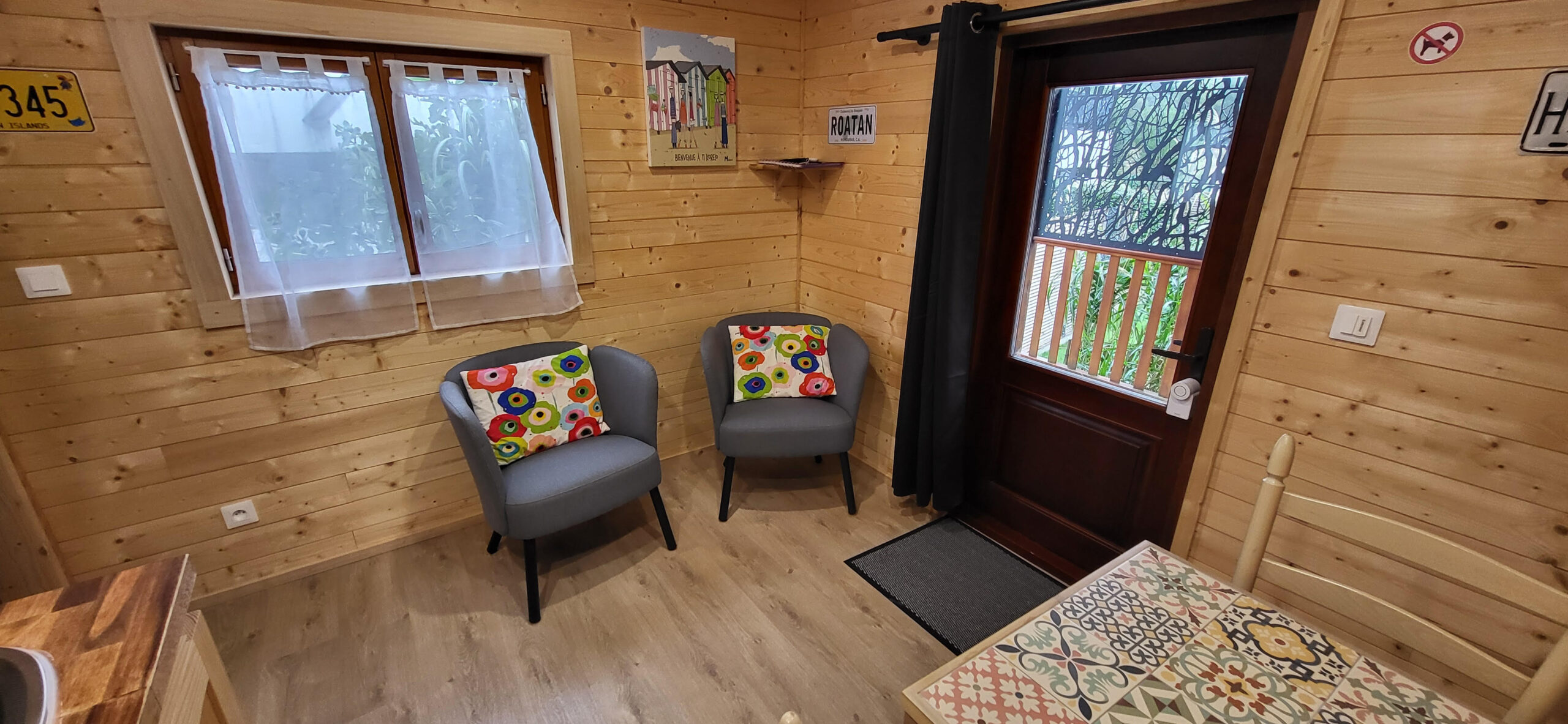 Roulotte chauffée dans une résidence de 3 appartements. Cuisine aménagée avec coin salon. Une chambre avec 1 lit double, salle de bain avec WC. Résidence fermée et sécurisée. Place de parking. Spa et sauna en supplément.