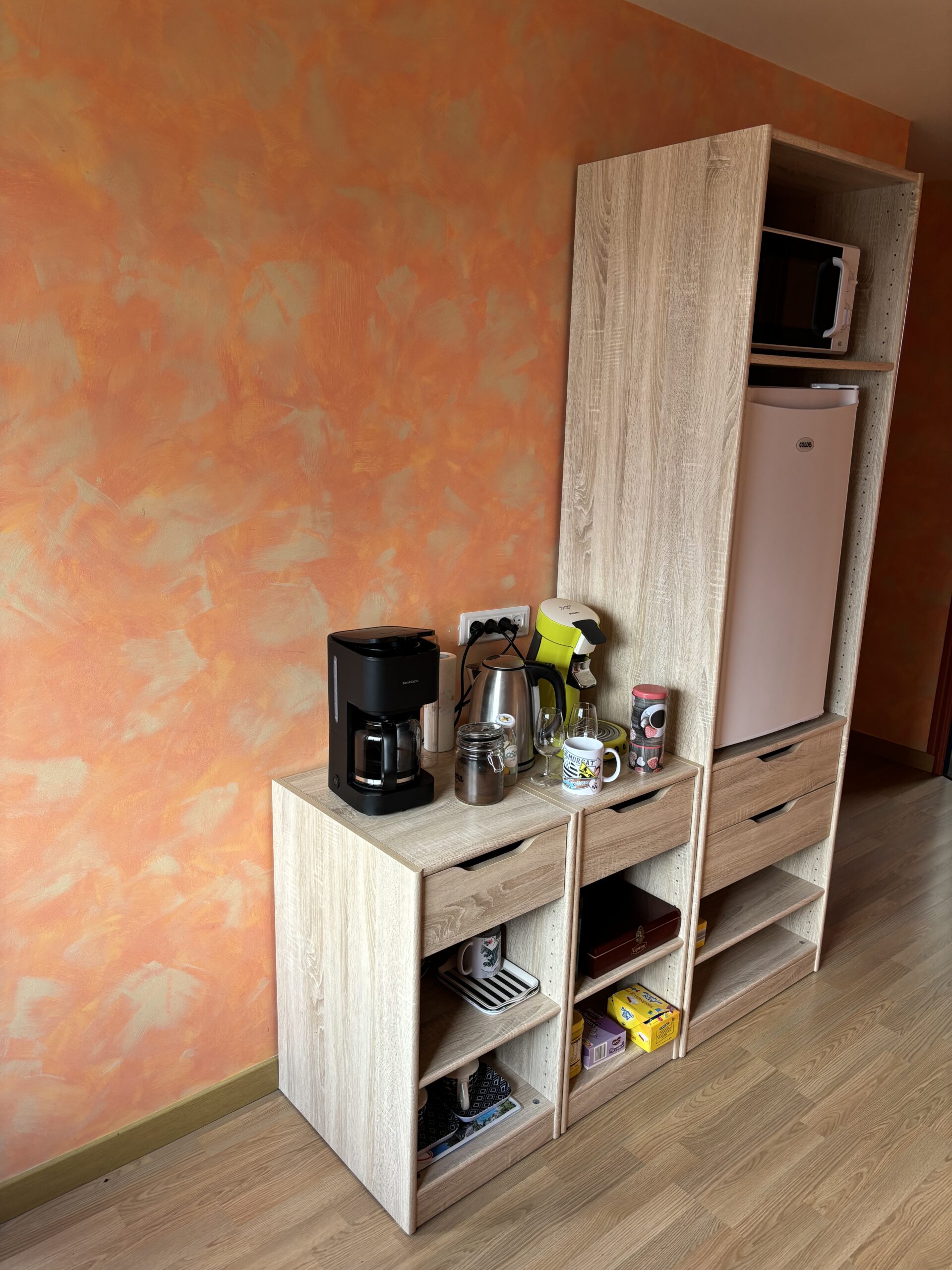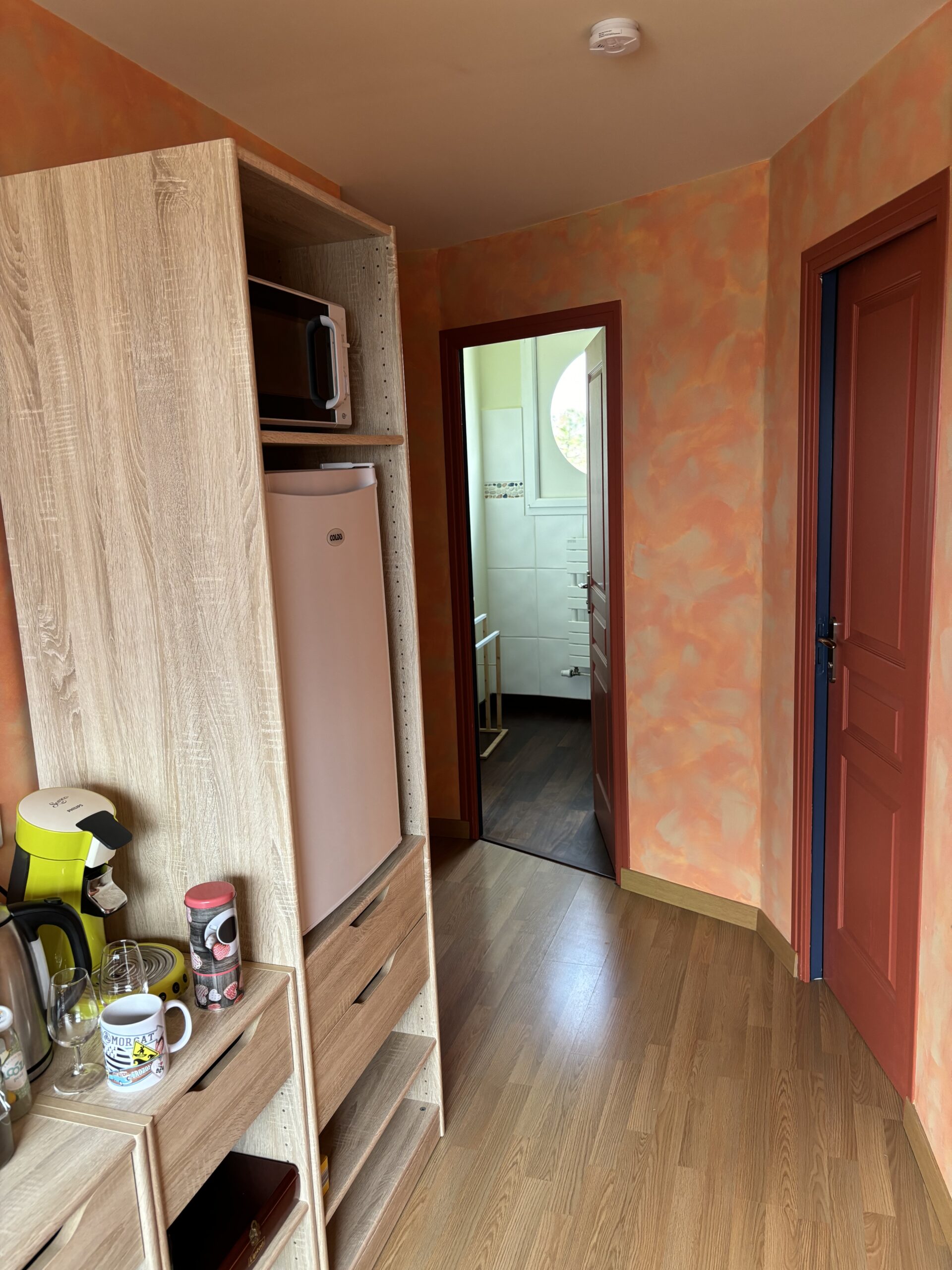 Votre chambre est équipée de WiFi, TV, un petit réfrigérateur, micro-ondes. Machine à café et bouilloire sont à votre disposition.