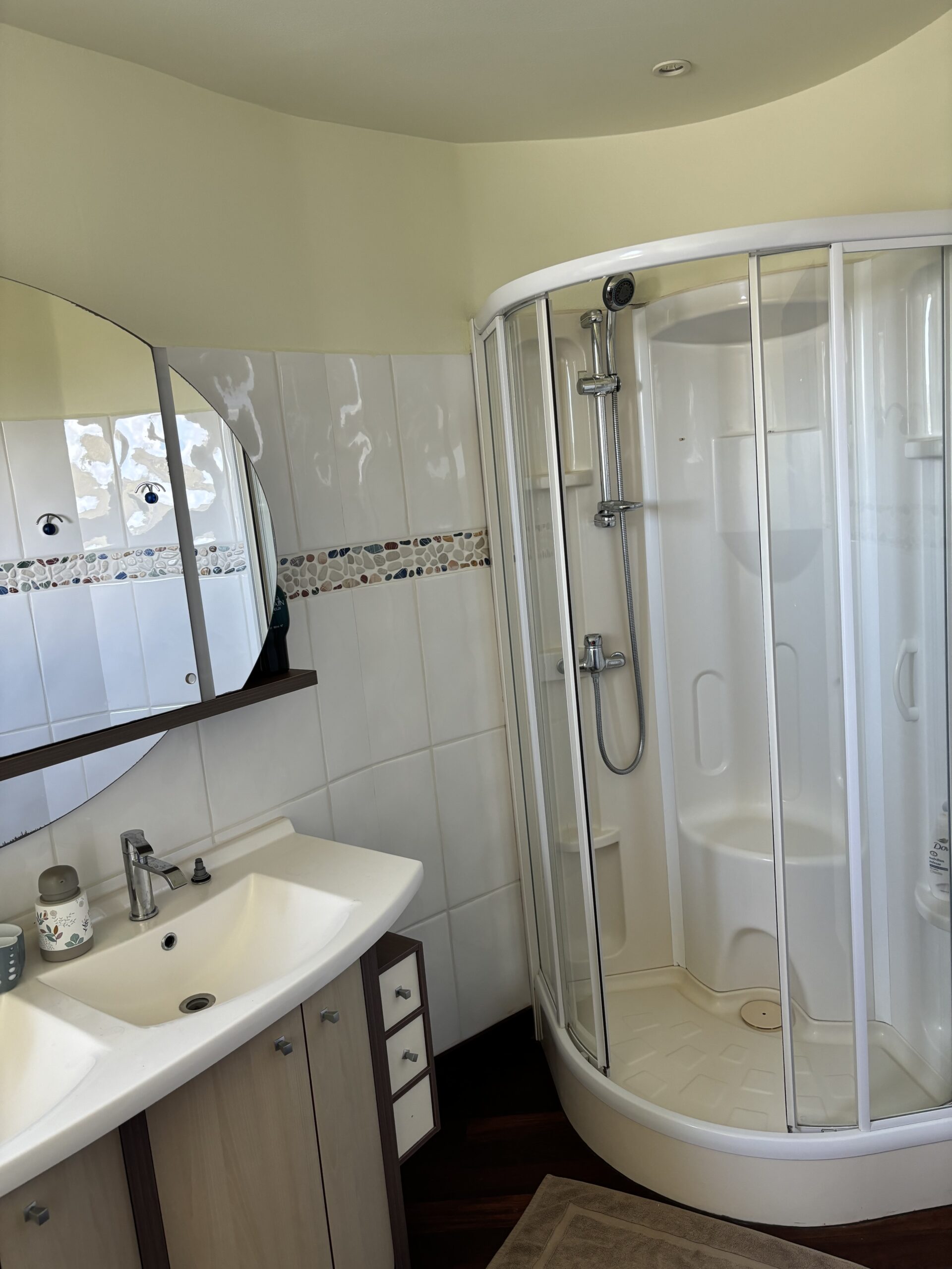 Vous bénéficiez d’un coin petit déjeuner, un mini salon, salle de bain et WC séparé.
