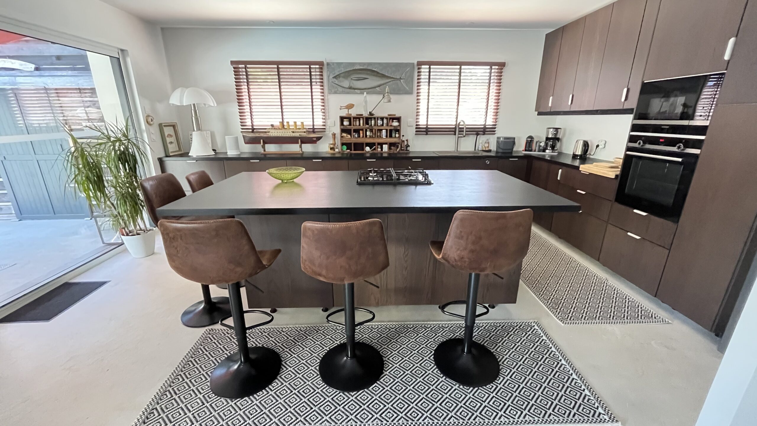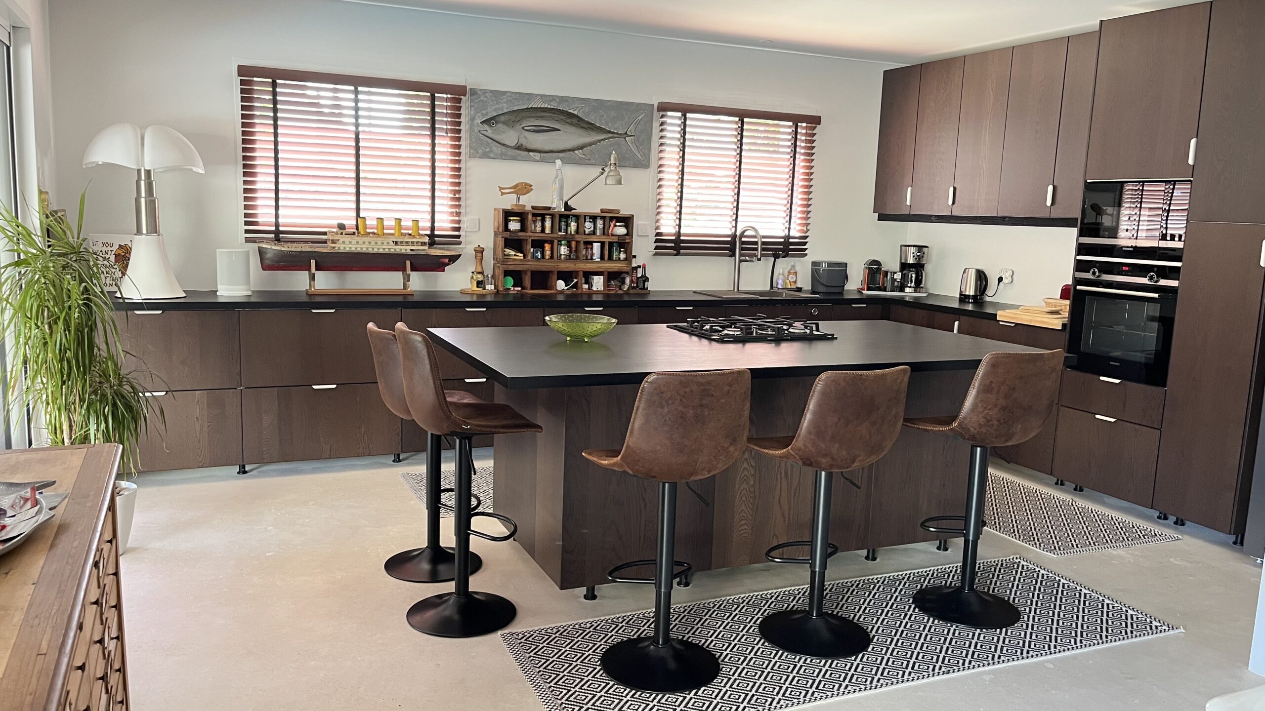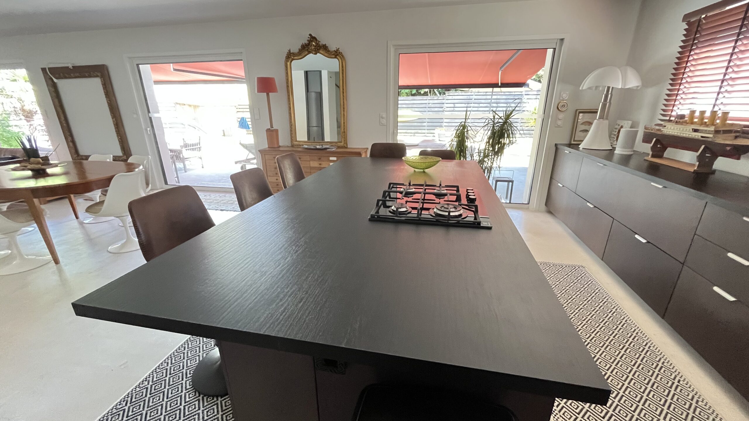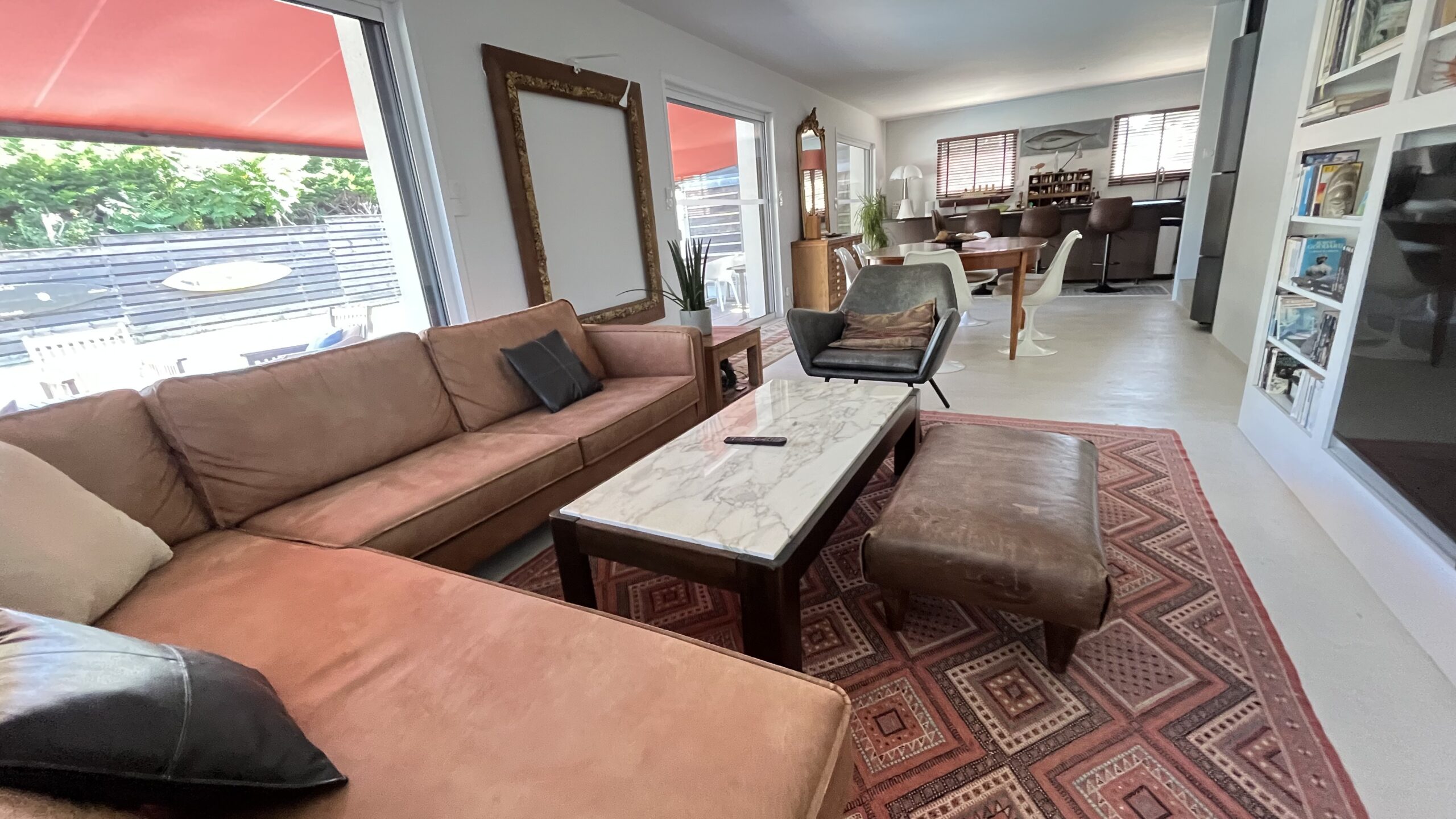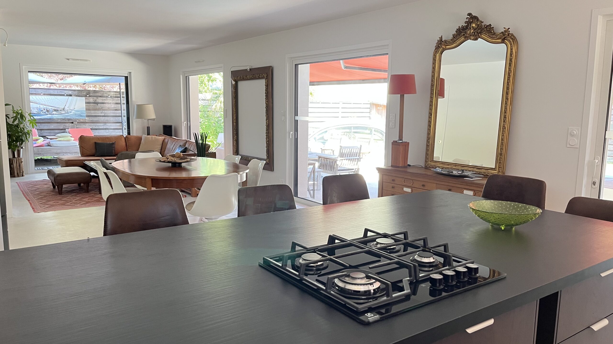 Au rez-de-chaussée: Grande pièce à vivre (50m2) avec cuisine ouverte, buanderie et salle d’eau (Sanitaires et douche à l’italienne).