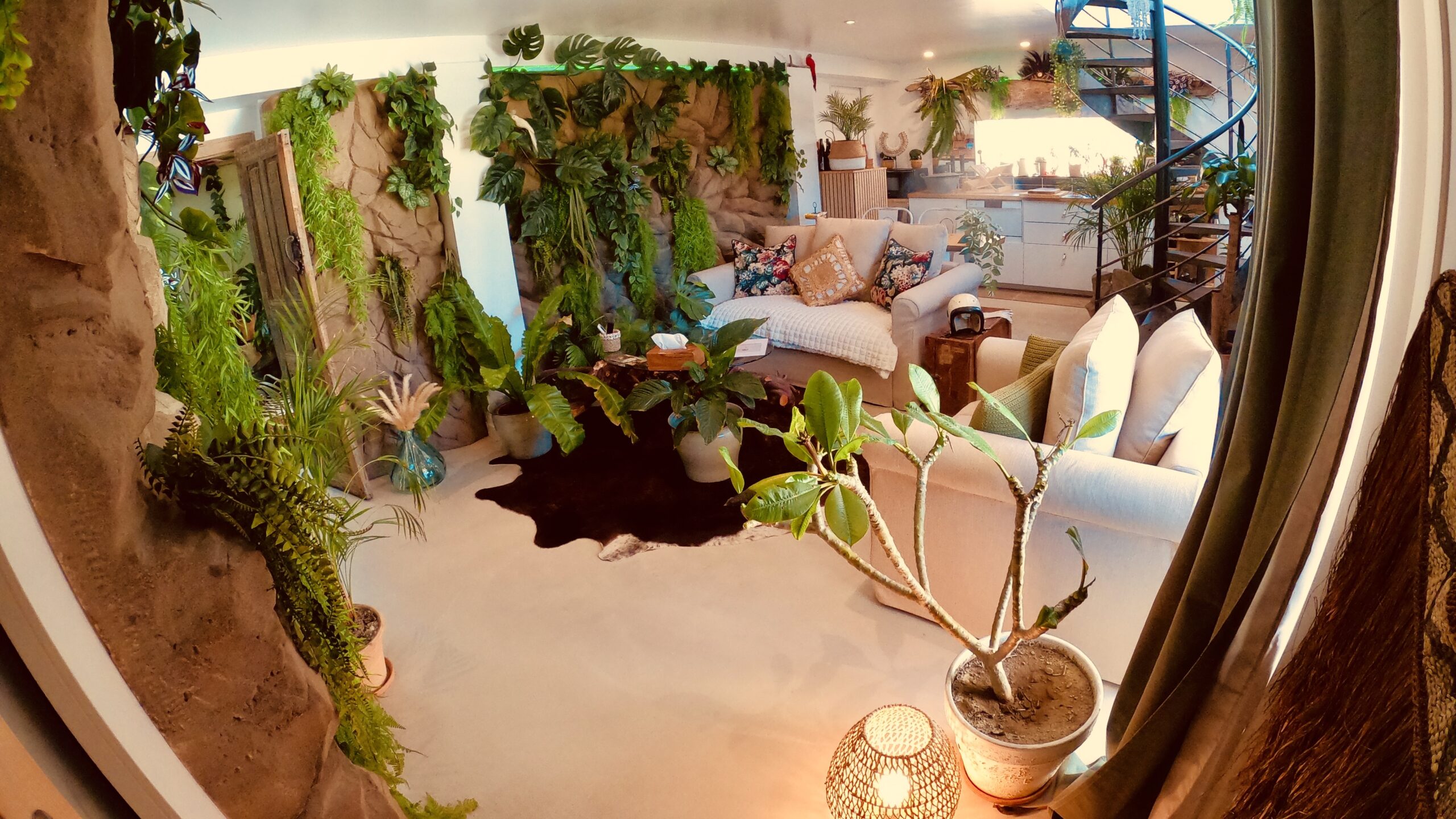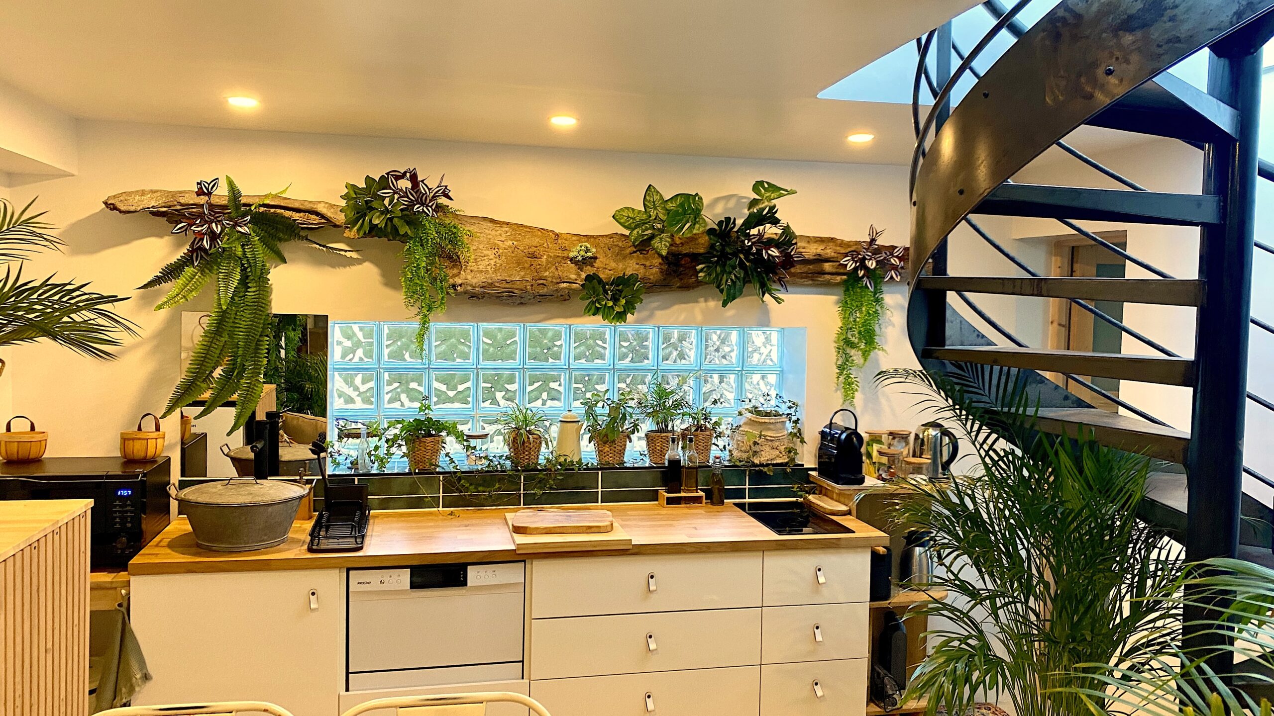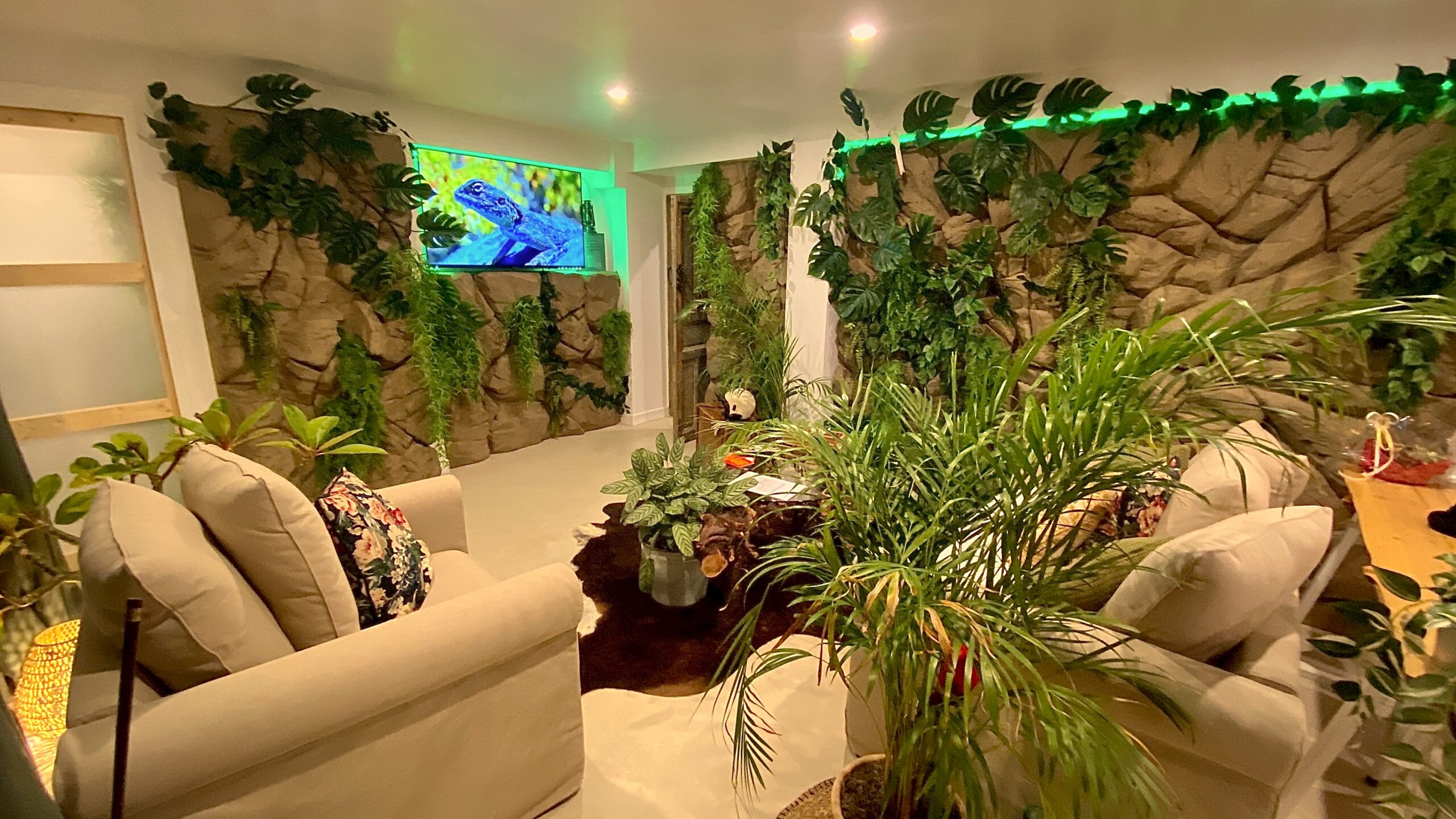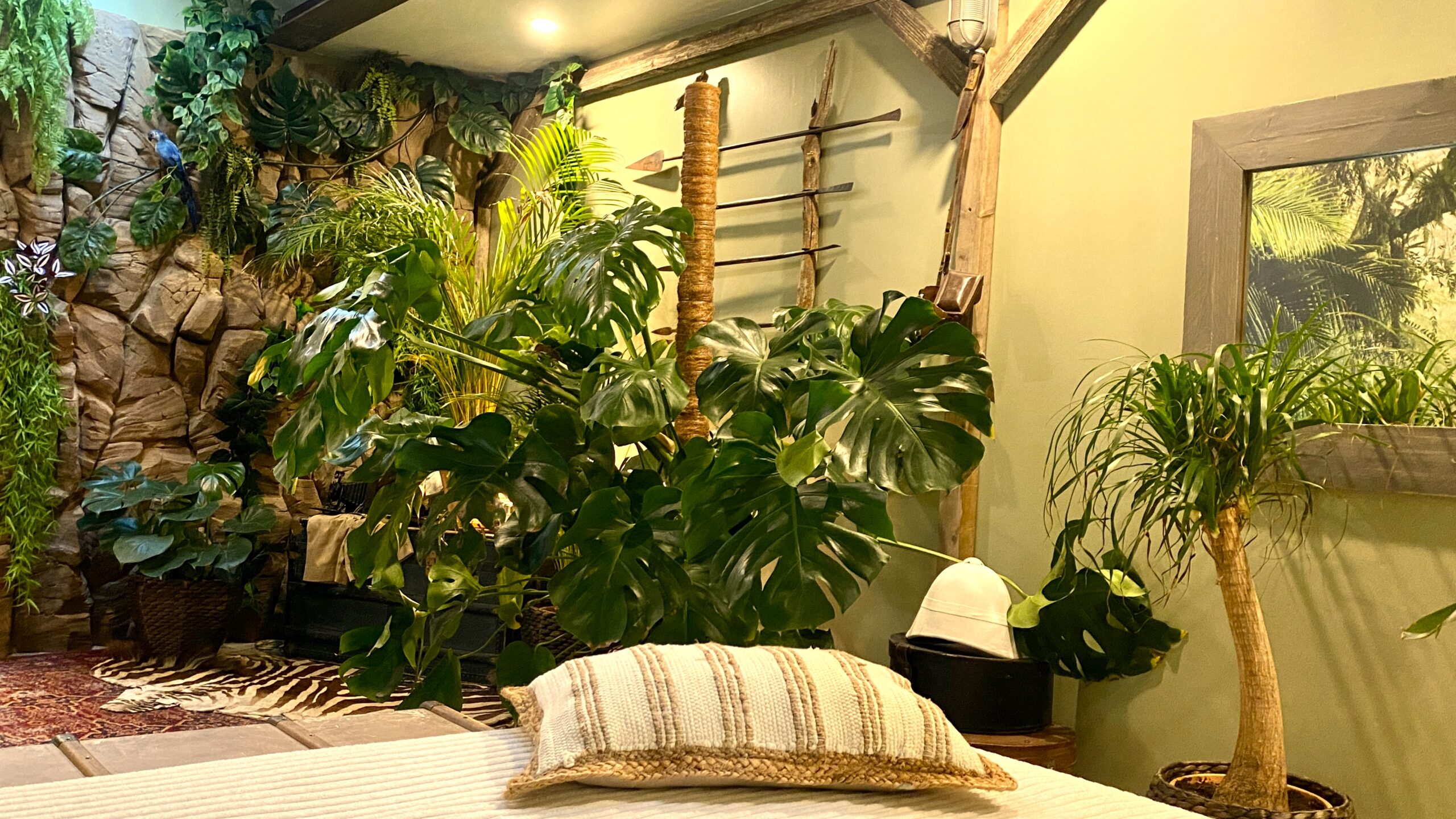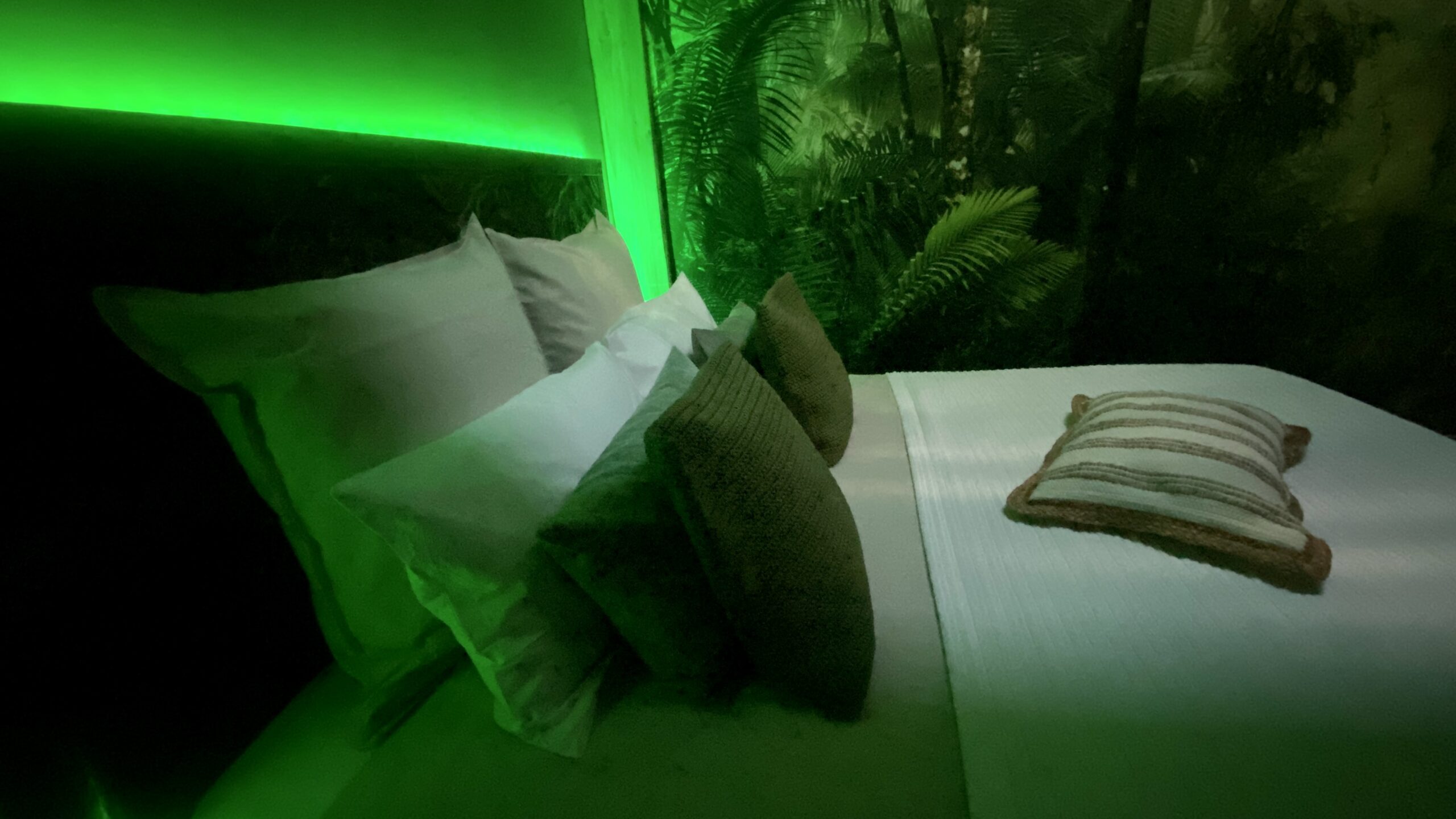 GRANDE CHAMBRE très cosy avec son dressing équipée d’un lit en 160/200 cm avec salle de douche et toilettes séparées tout confort dans un décor de jungle tropicale…