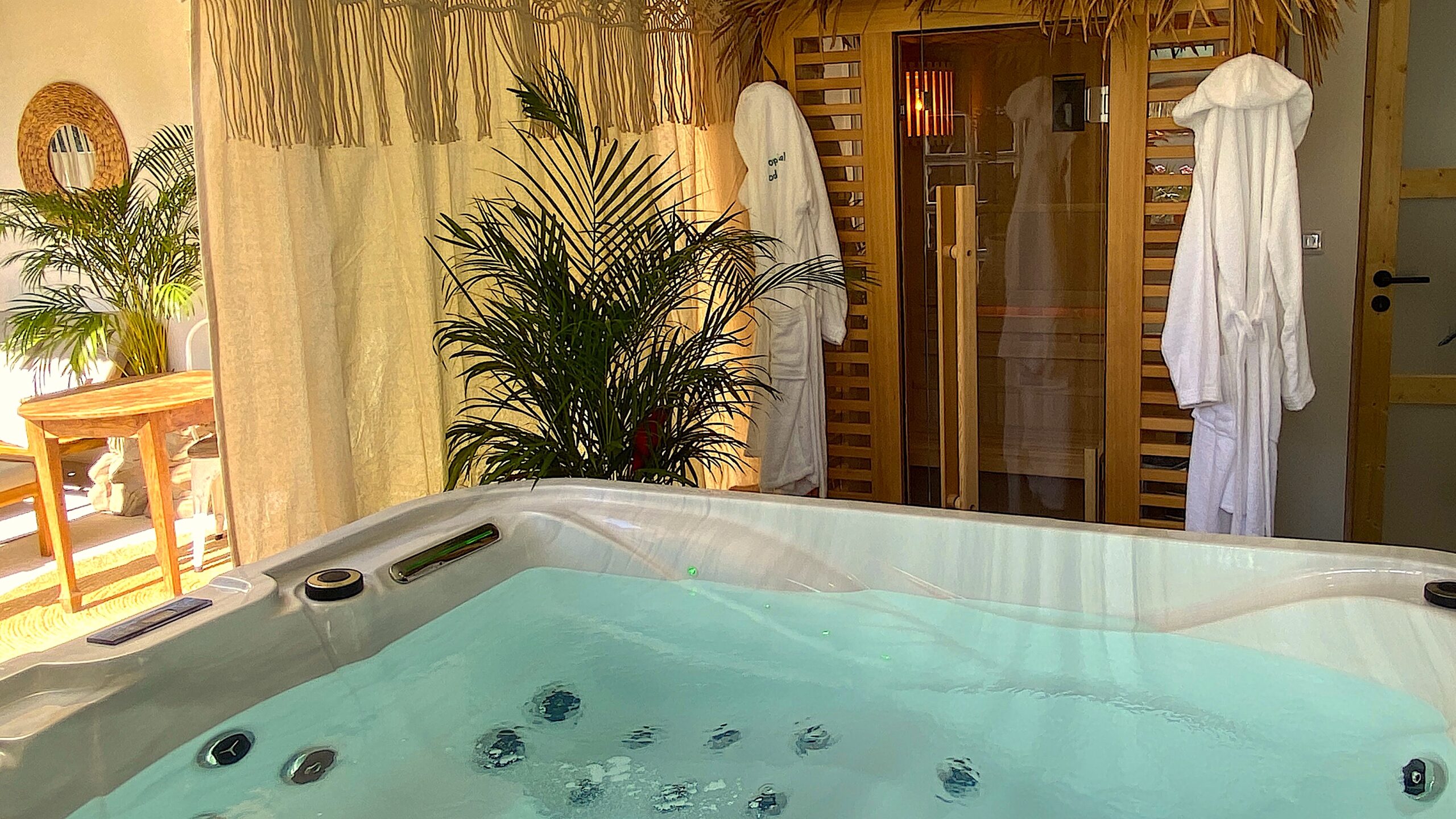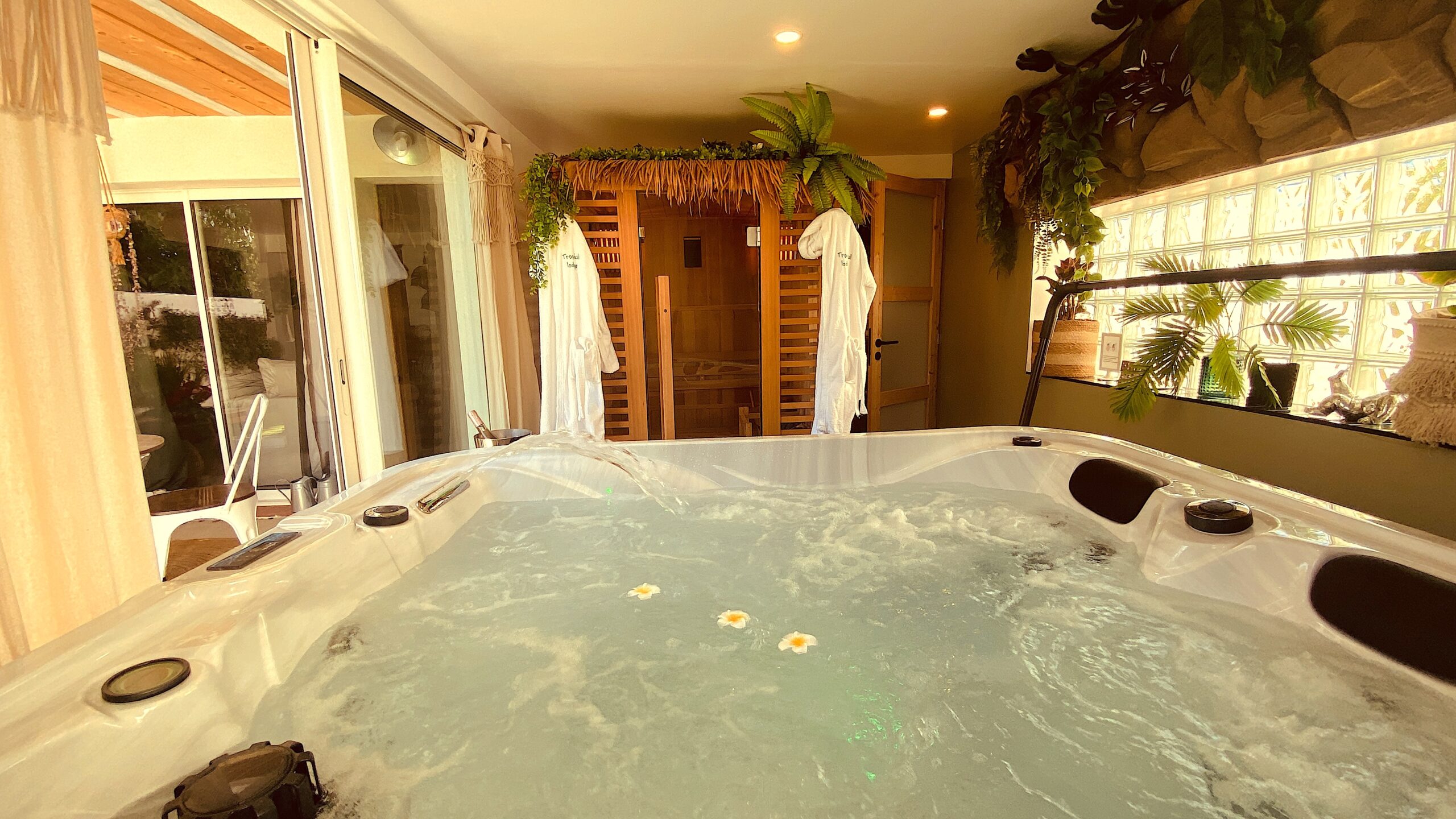 Pour votre relaxation une pièce BIEN-ETRE vous attend pour profiter du JACUZZI * et du SAUNA * PRIVATIFS…en finissant si vous le souhaitez par un MASSAGE corporel (en option)…