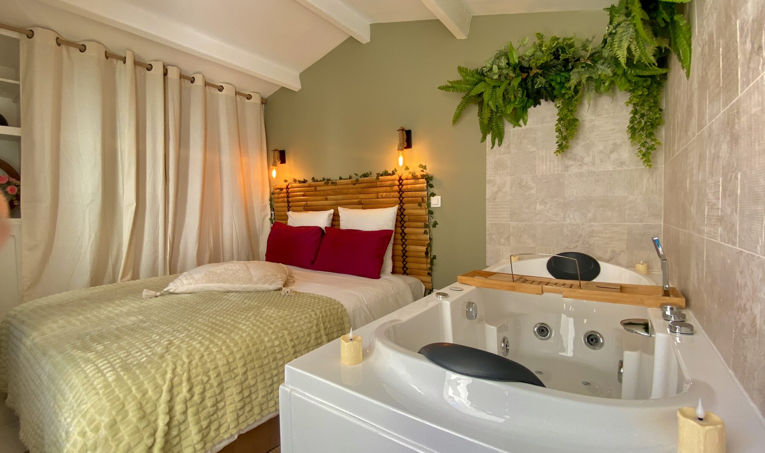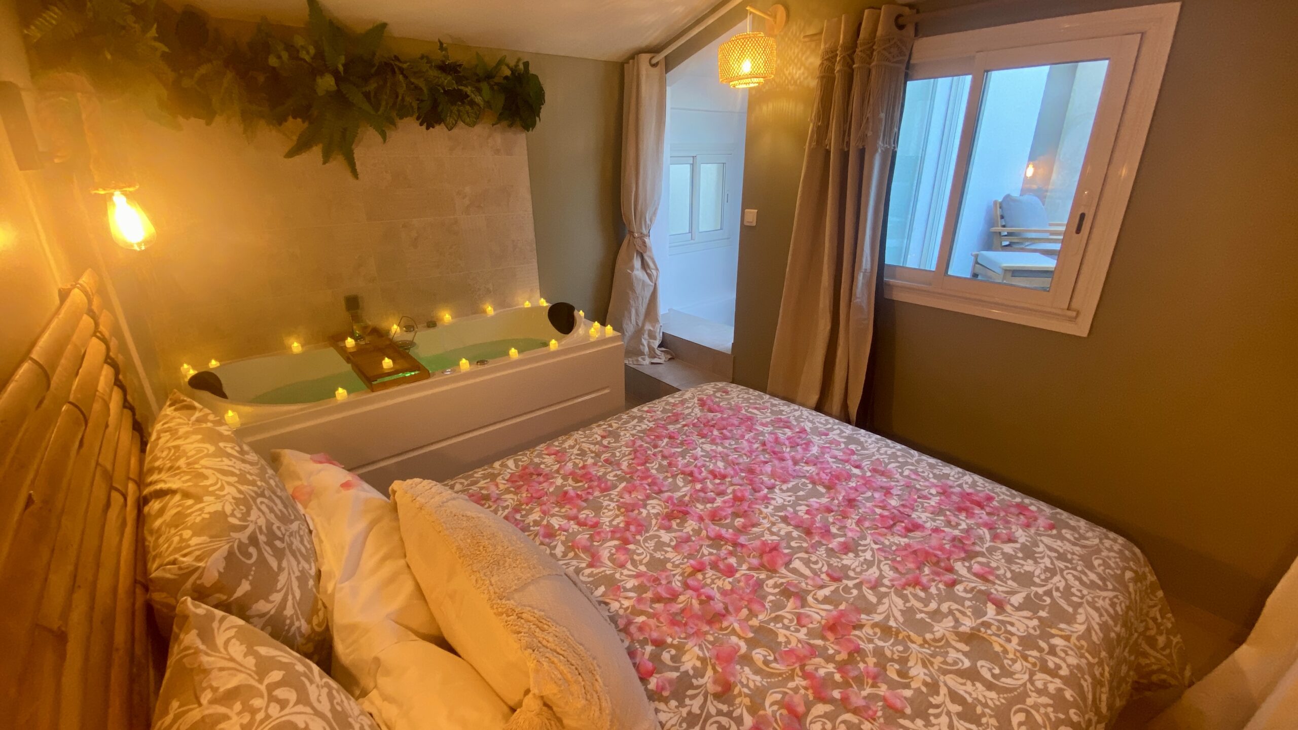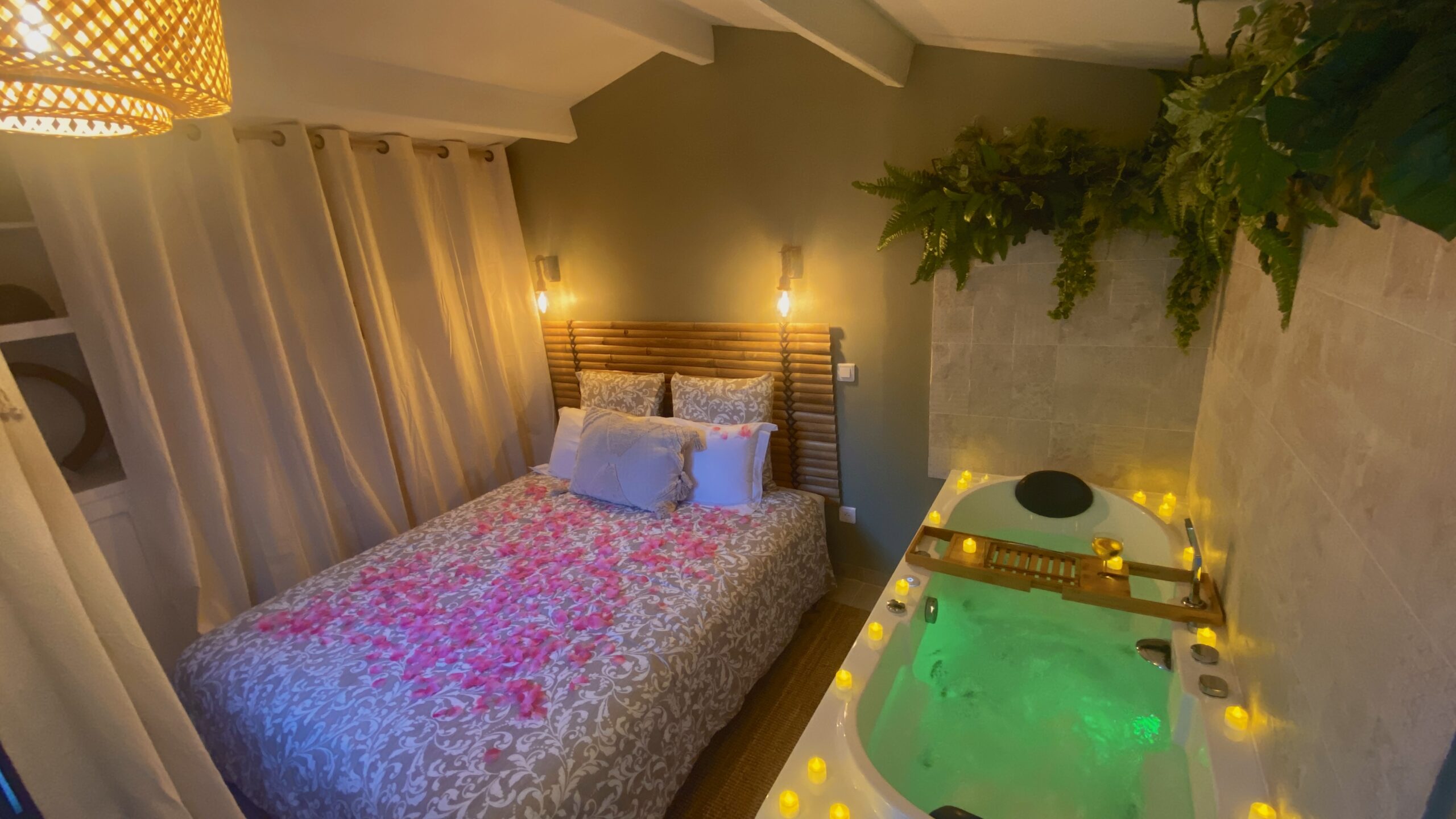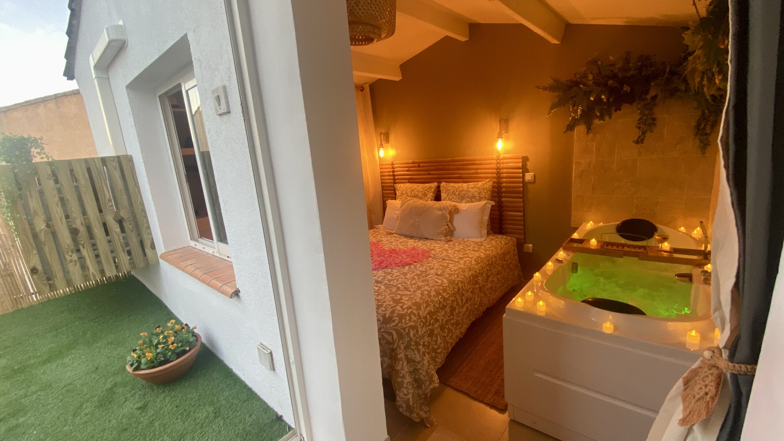 Gîte duplex climatisé situé au 1er étage d’un bâtiment en ville, il s’ouvre sur un séjour avec un coin salon disposant d’un canapé avec TV et une table à manger, une cuisine ouverte toute équipée. Une salle d’eau avec douche, lavabo et toilette séparée. Un espace bien-être avec une table de massage. A l’étage, une chambre avec un lit 160/200 et une baignoire SPA attenante avec un accès direct à la terrasse. A votre arrivée un panier d’accueil est mis à votre disposition gratuitement (petites sucreries, café, thé). Tout est compris (draps, serviettes, brosse à dents, ménage fin de séjour). Connexion WIFI. Petit-déjeuner et massage en supplément. Parking public à proximité (gratuit le soir et le week-end).
