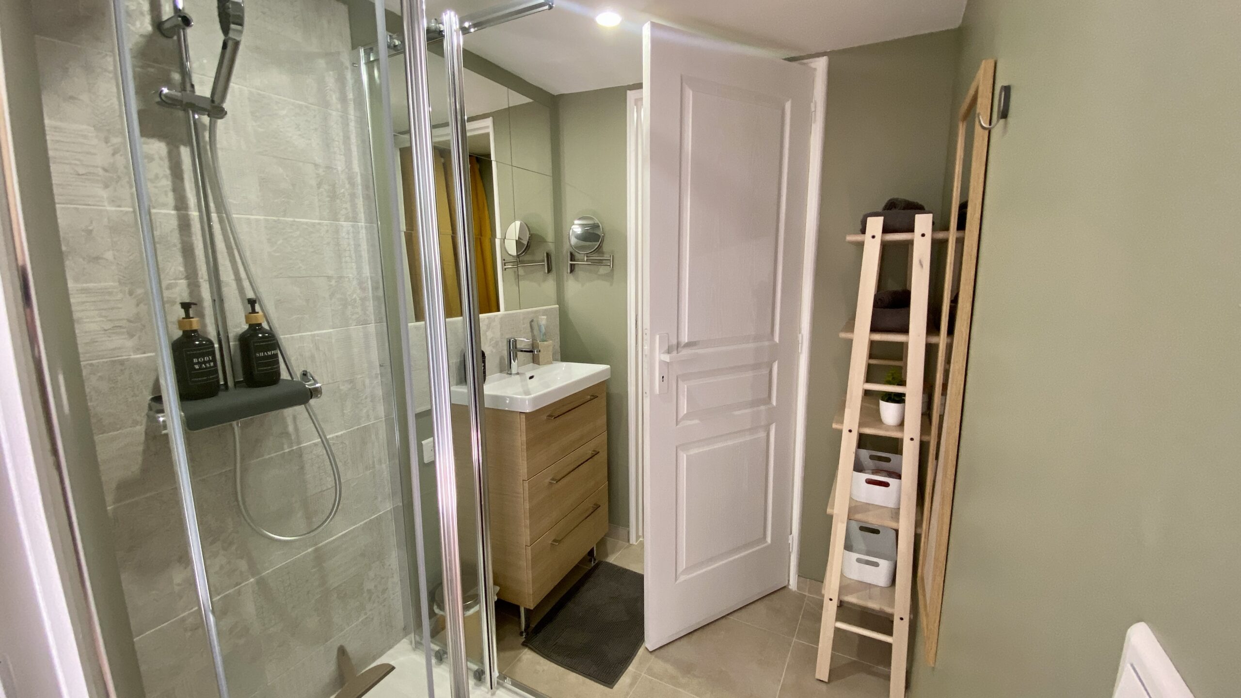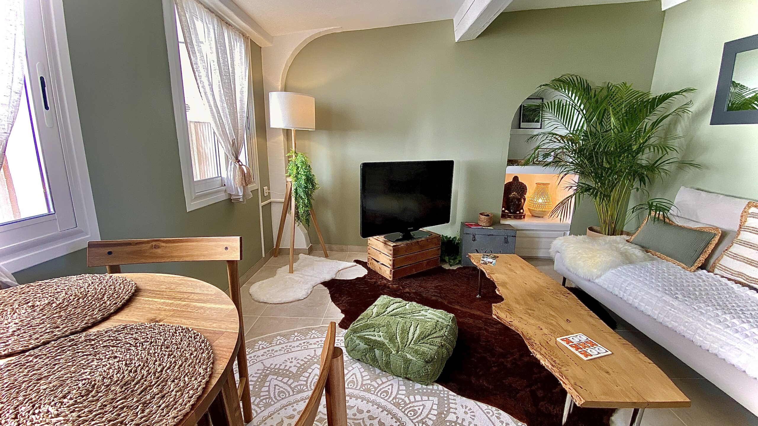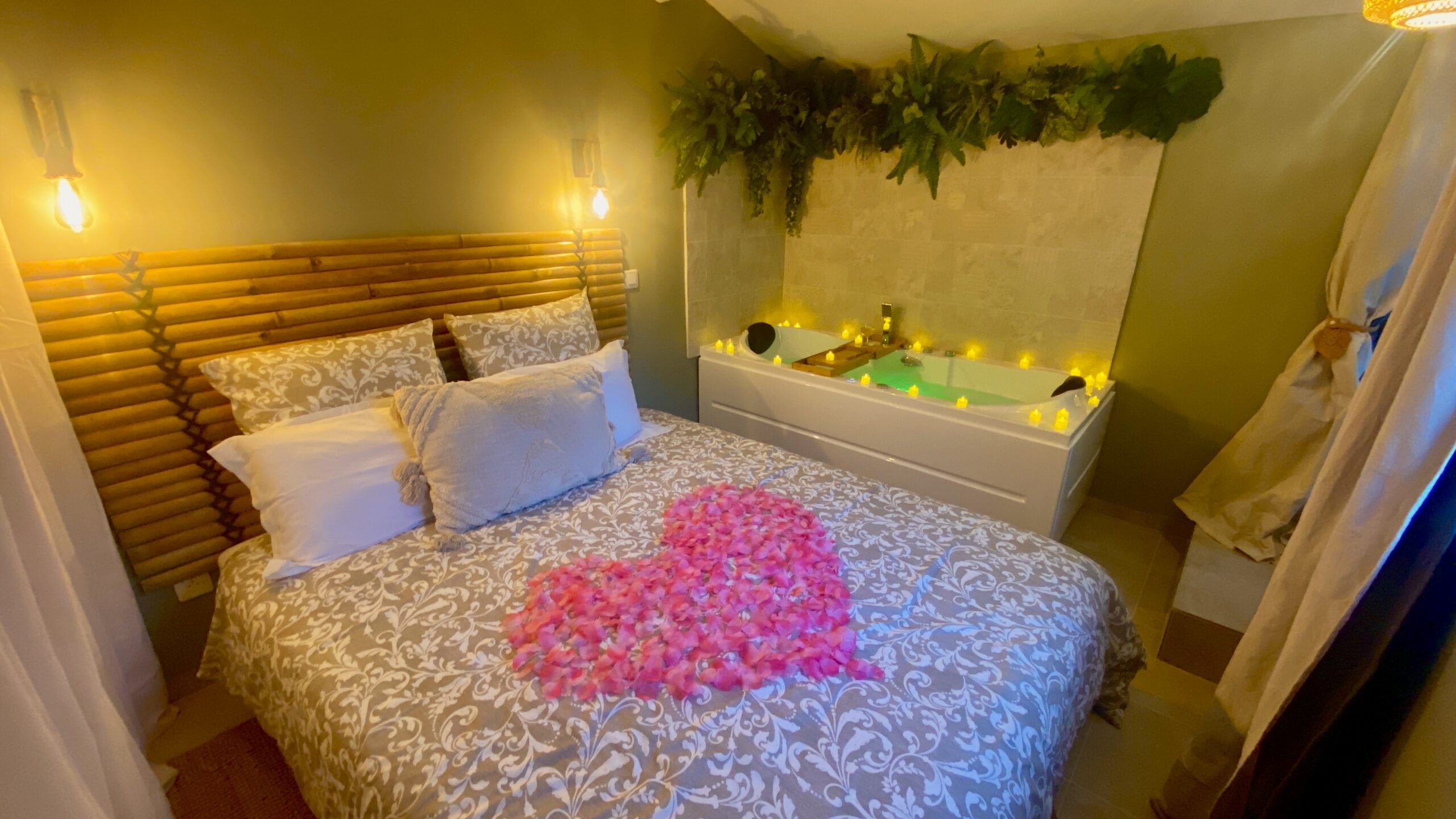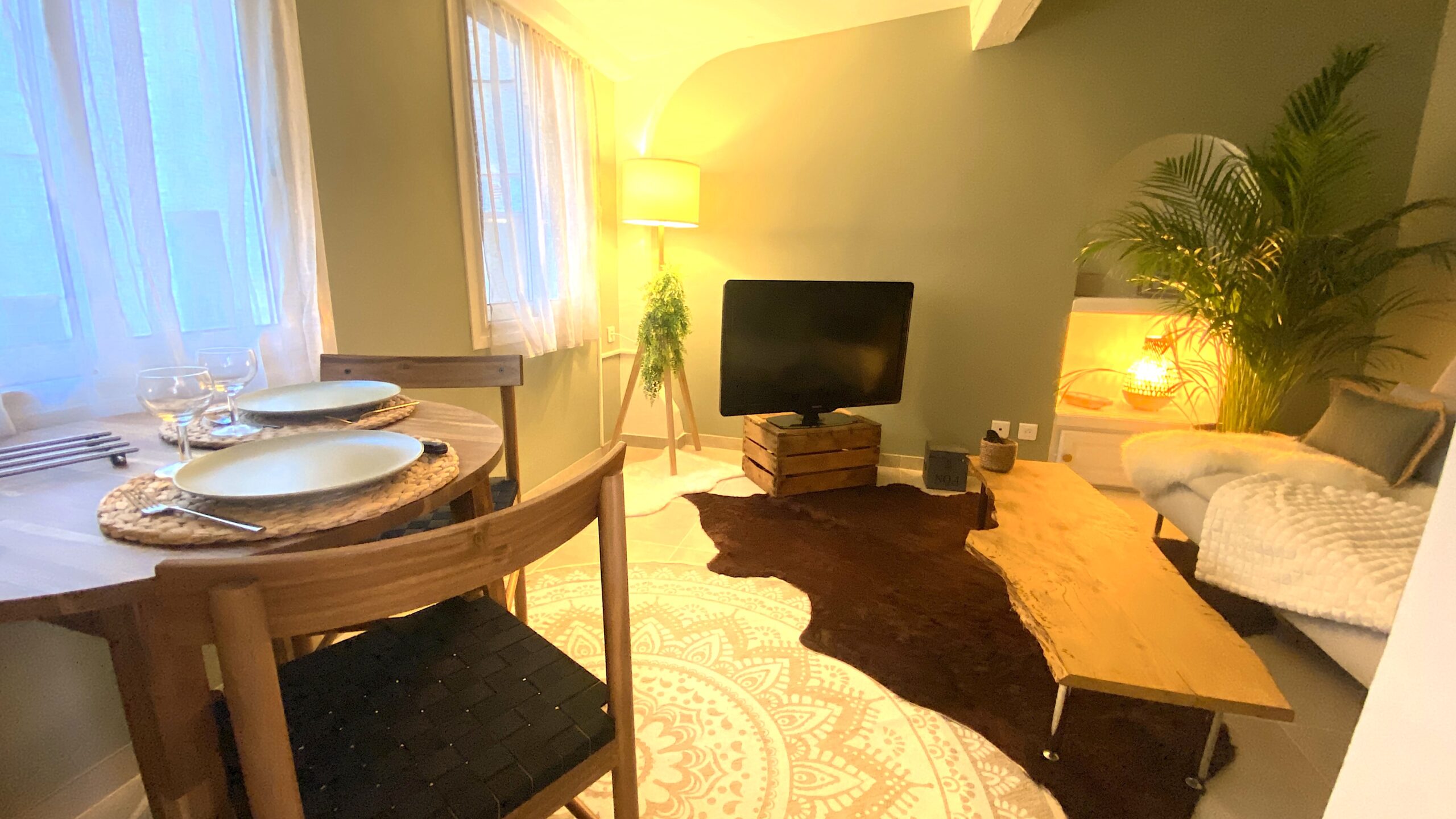 Gîte duplex climatisé situé au 1er étage d’un bâtiment en ville, il s’ouvre sur un séjour avec un coin salon disposant d’un canapé avec TV et une table à manger, une cuisine ouverte toute équipée. Une salle d’eau avec douche, lavabo et toilette séparée. Un espace bien-être avec une table de massage. A l’étage, une chambre avec un lit 160/200 et une baignoire SPA attenante avec un accès direct à la terrasse. A votre arrivée un panier d’accueil est mis à votre disposition gratuitement (petites sucreries, café, thé). Tout est compris (draps, serviettes, brosse à dents, ménage fin de séjour). Connexion WIFI. Petit-déjeuner et massage en supplément. Parking public à proximité (gratuit le soir et le week-end).