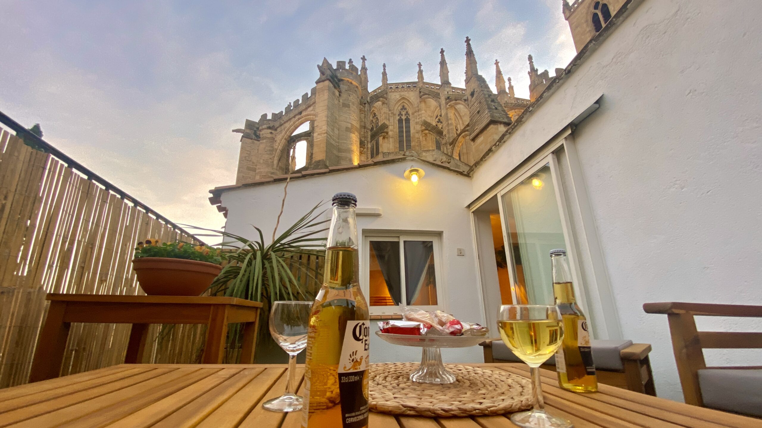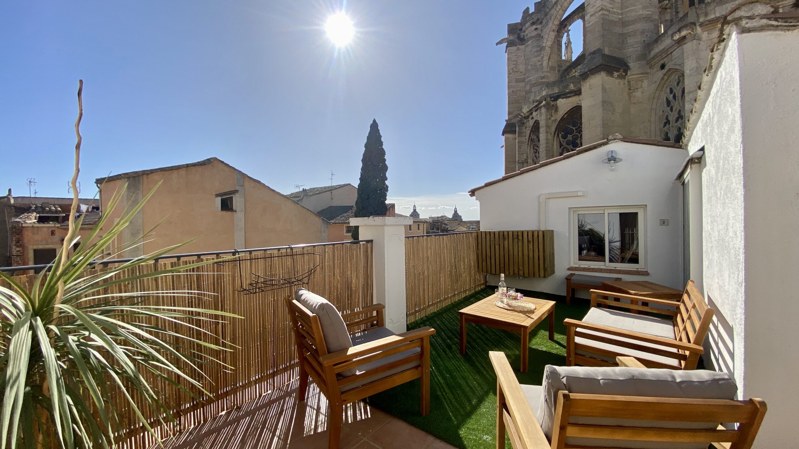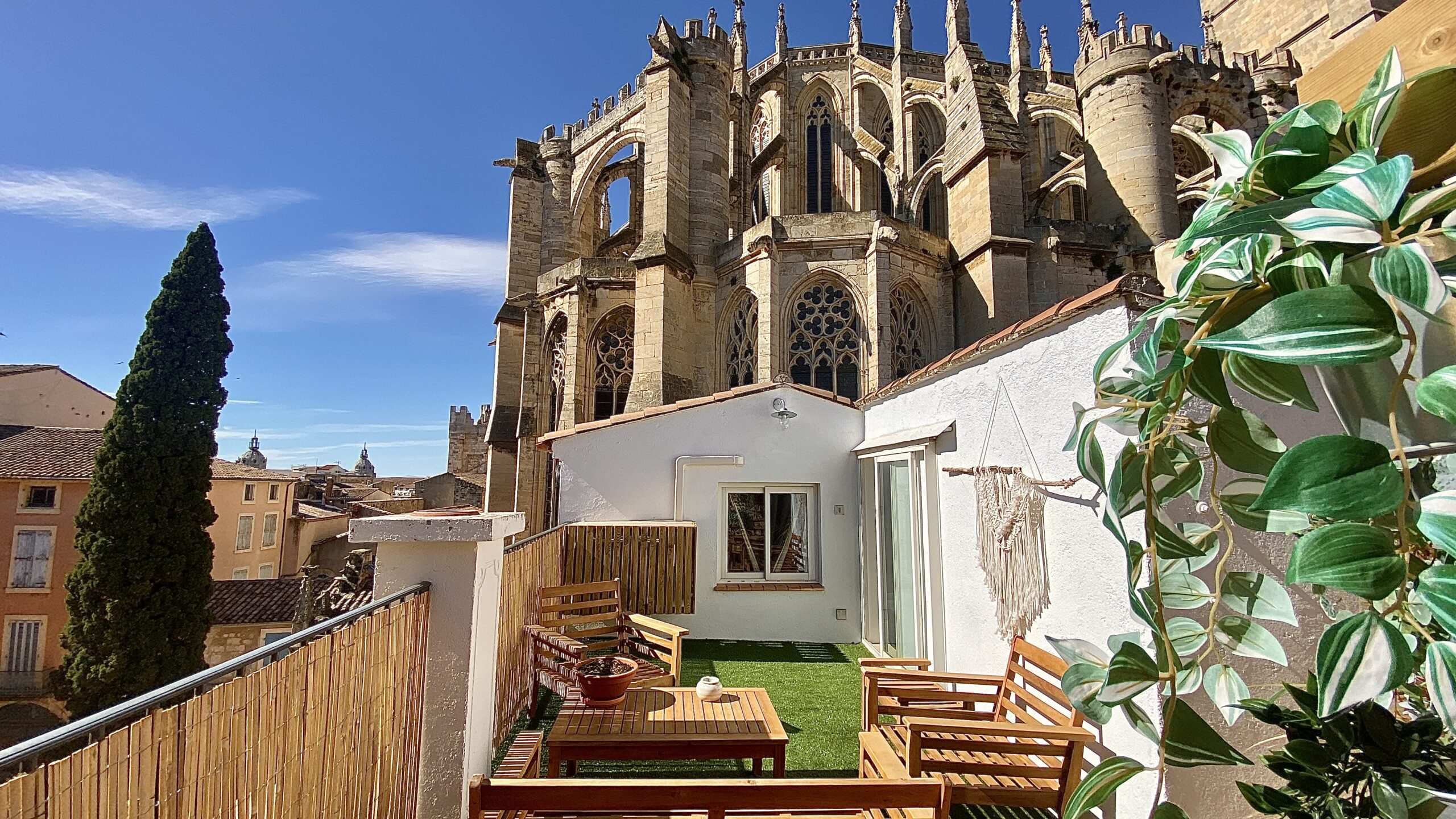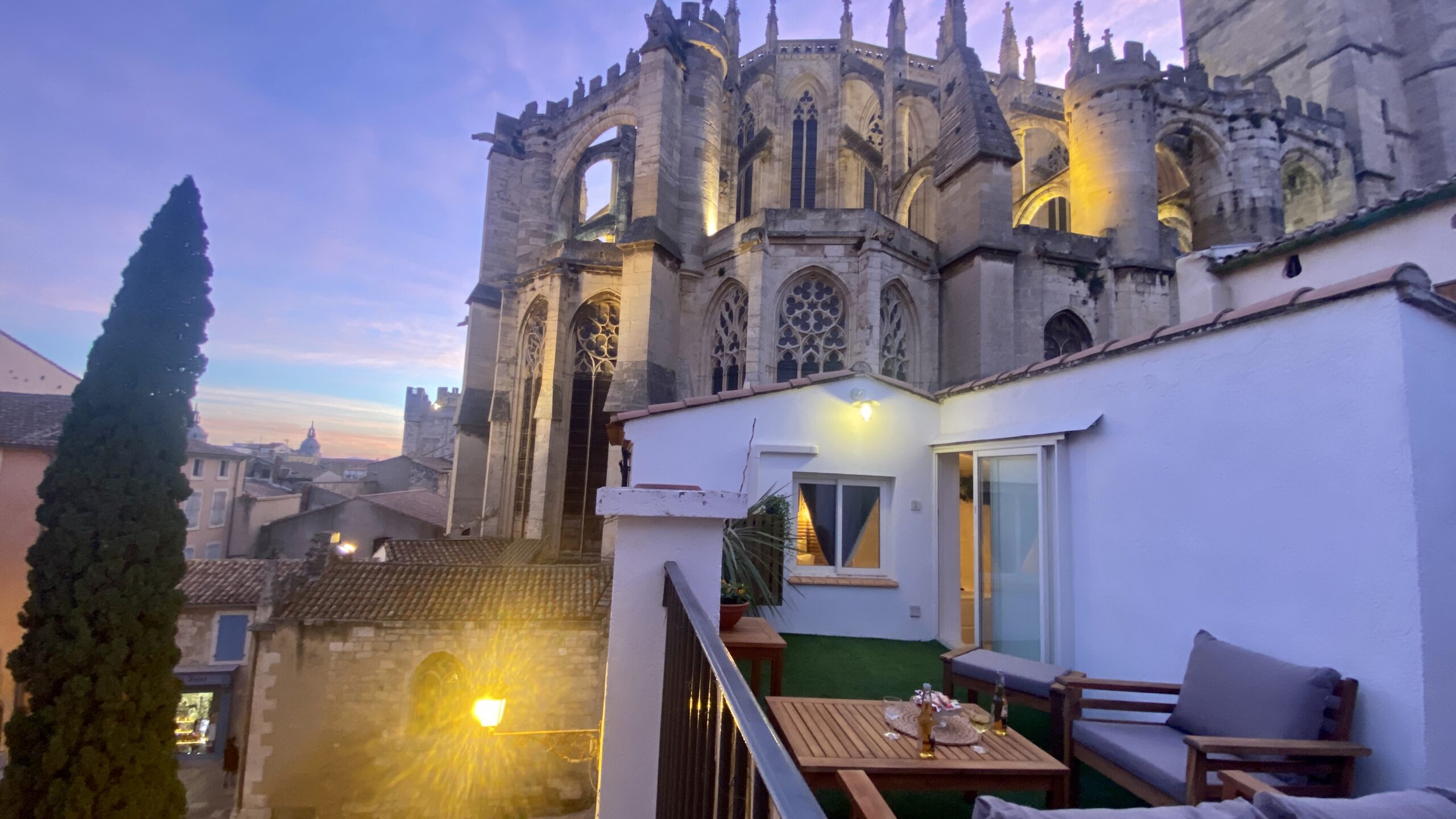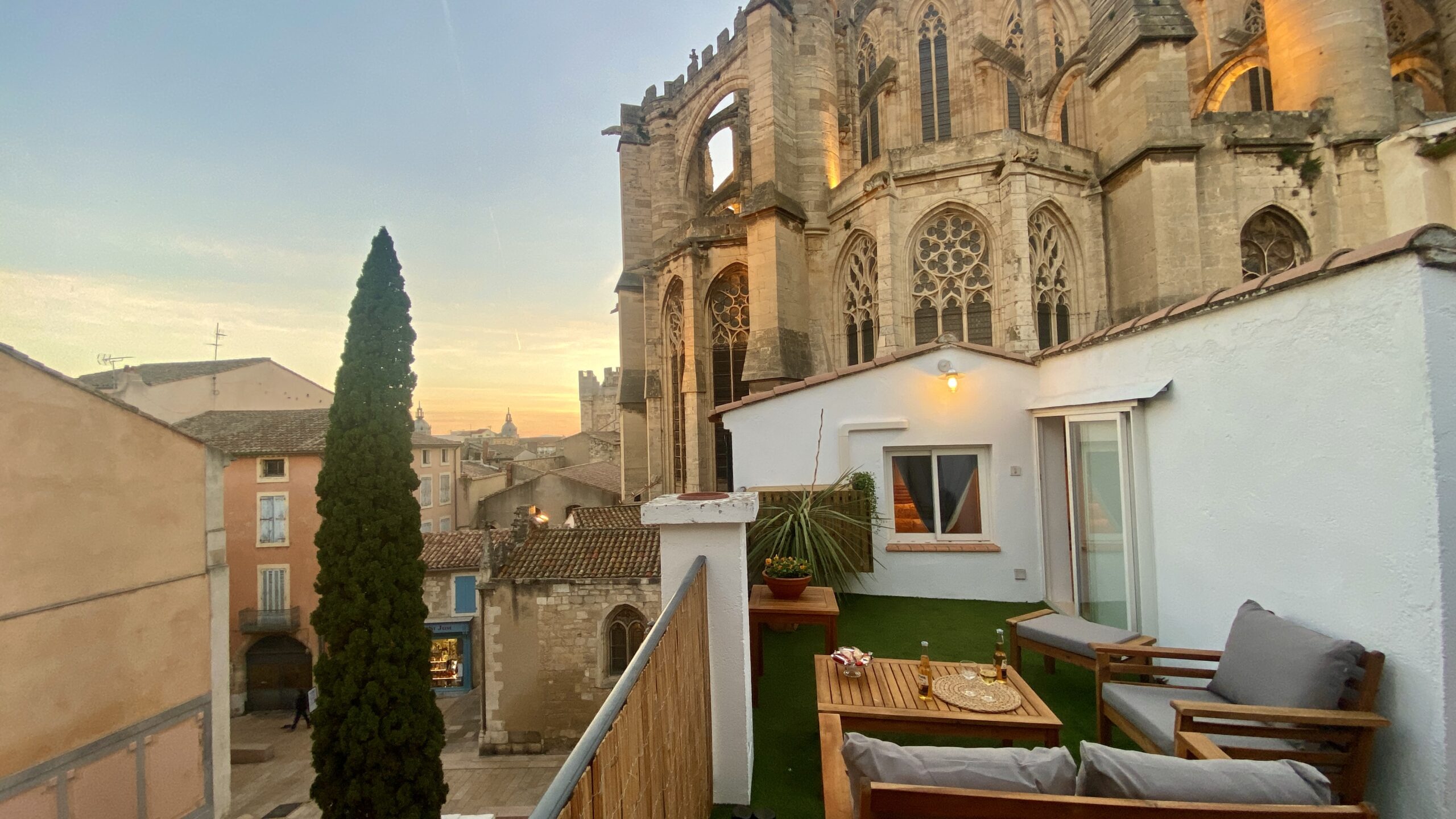Magnifique duplex tout équipé avec terrasse et baignoire Jacuzzi en plein centre historique de Narbonne avec vue sur la Cathédrale..