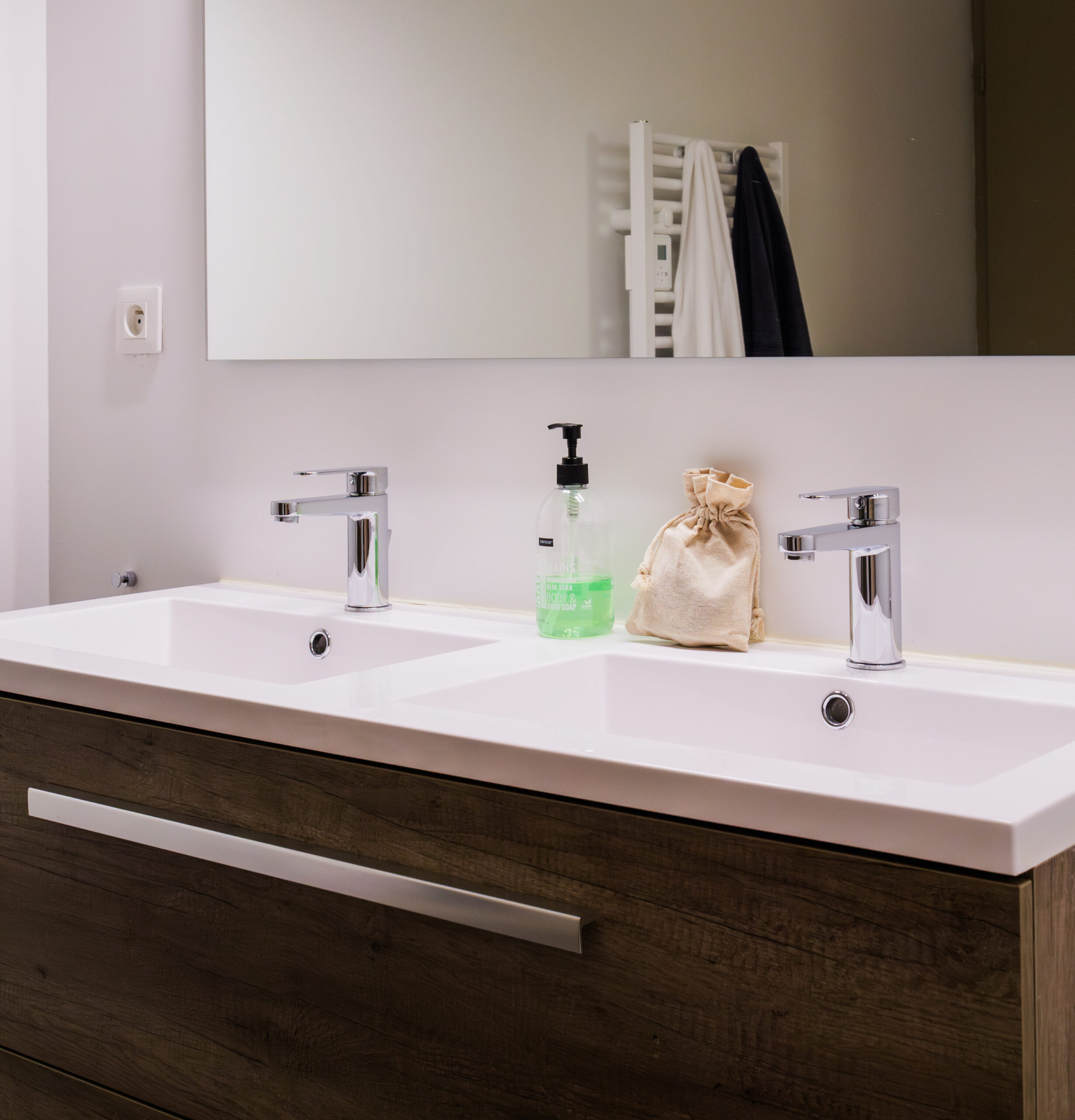– 1 salle d’eau (douche à l’italienne, meuble double vasque, sèche serviettes, fenêtre)