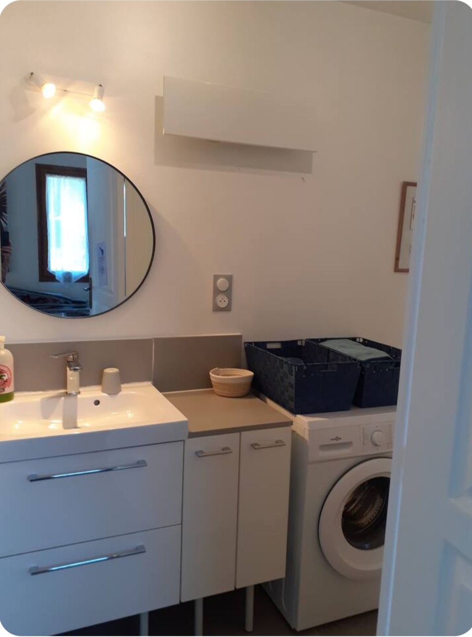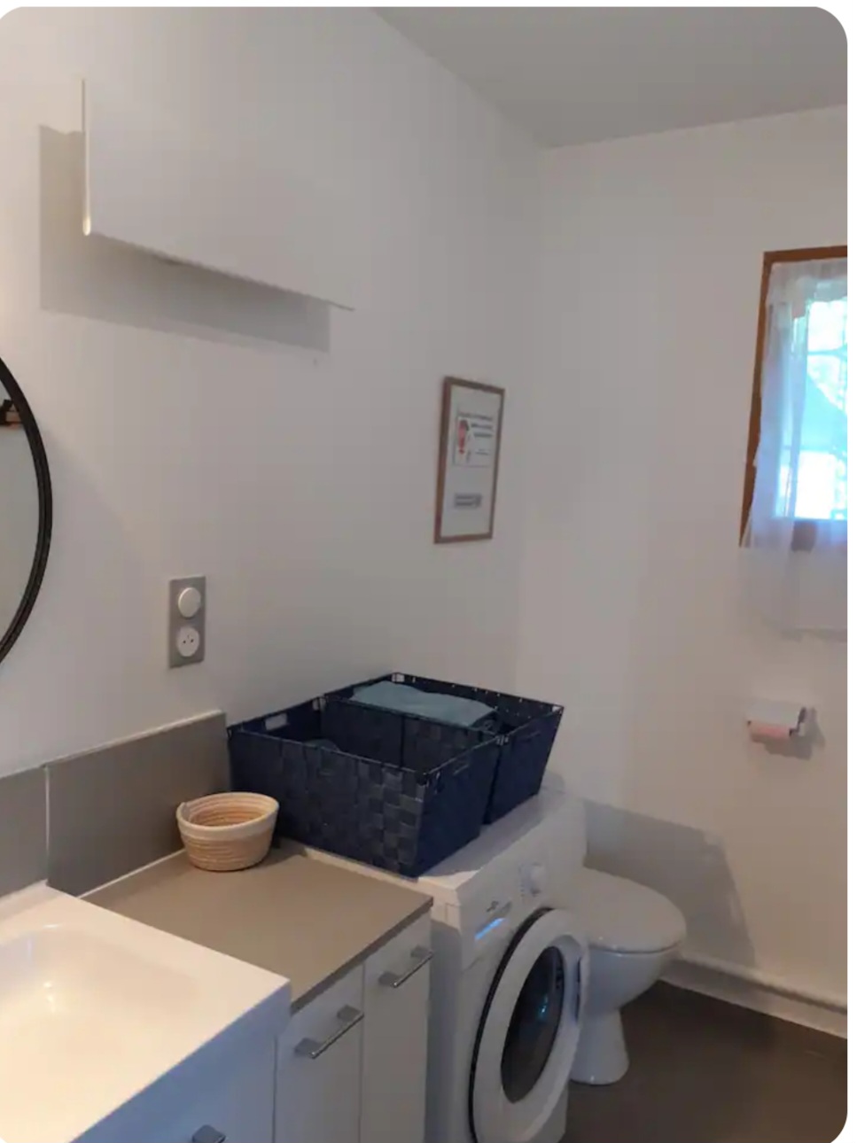 Possibilité 6 couchages,canapé lit. cuisine,avec frigo .cafetière a filtre (placard senseo).deux plaques de cuisson.un petit four. un four micro-ondes. une salle de douche, avec WC et lave linge.