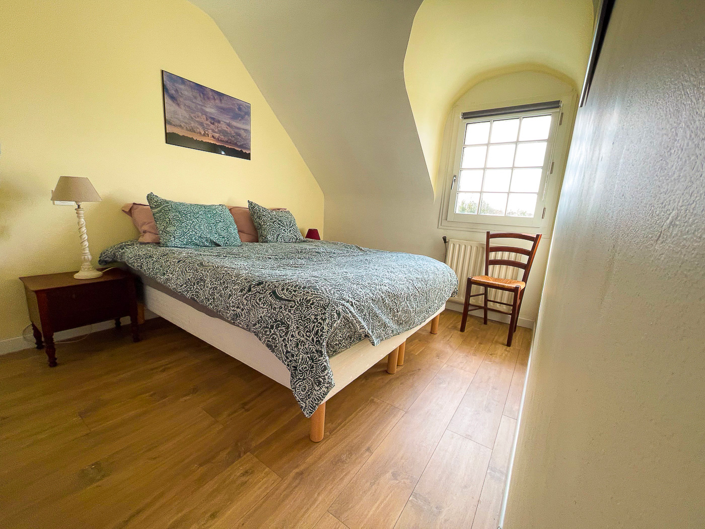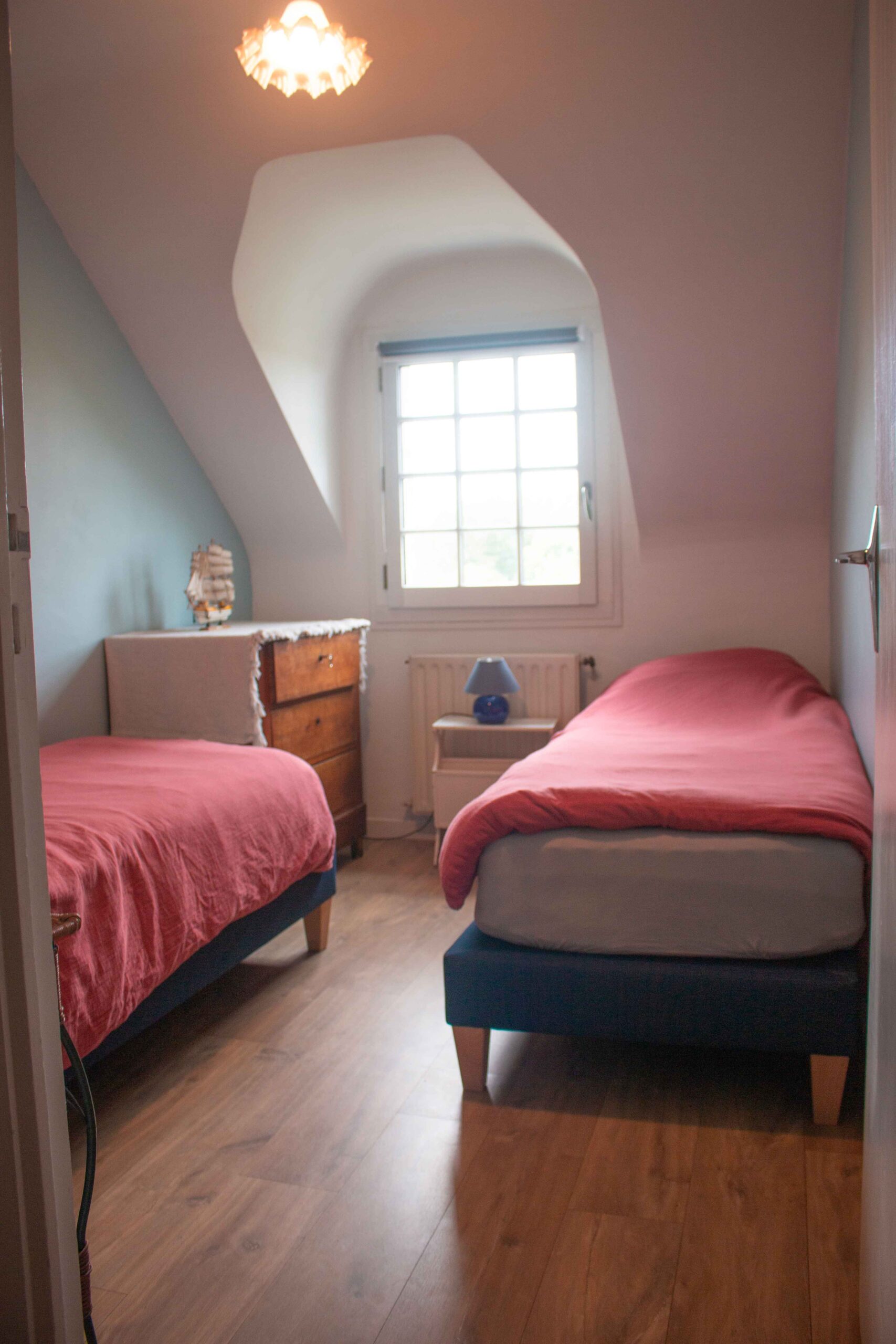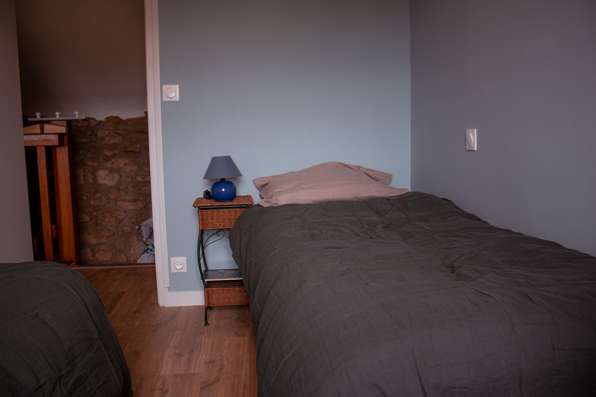 2 chambres : une avec lit double, l’autre avec 2 lits simples, et un canapé-lit dans le salon