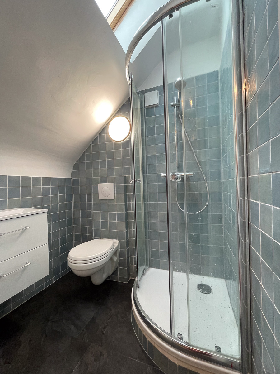 Malgré la proximité d’une route passante, la maison est parfaitement isolée, garantissant le calme et le confort à l’intérieur comme dans le jardin.