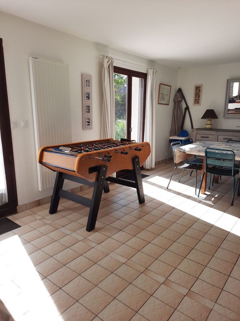 Equipement neuf et de qualité: piano de cuisson, réfrigérateur congélateur, lave-vaisselle, lave-linge, sèche-linge, microondes…et un babyfoot.