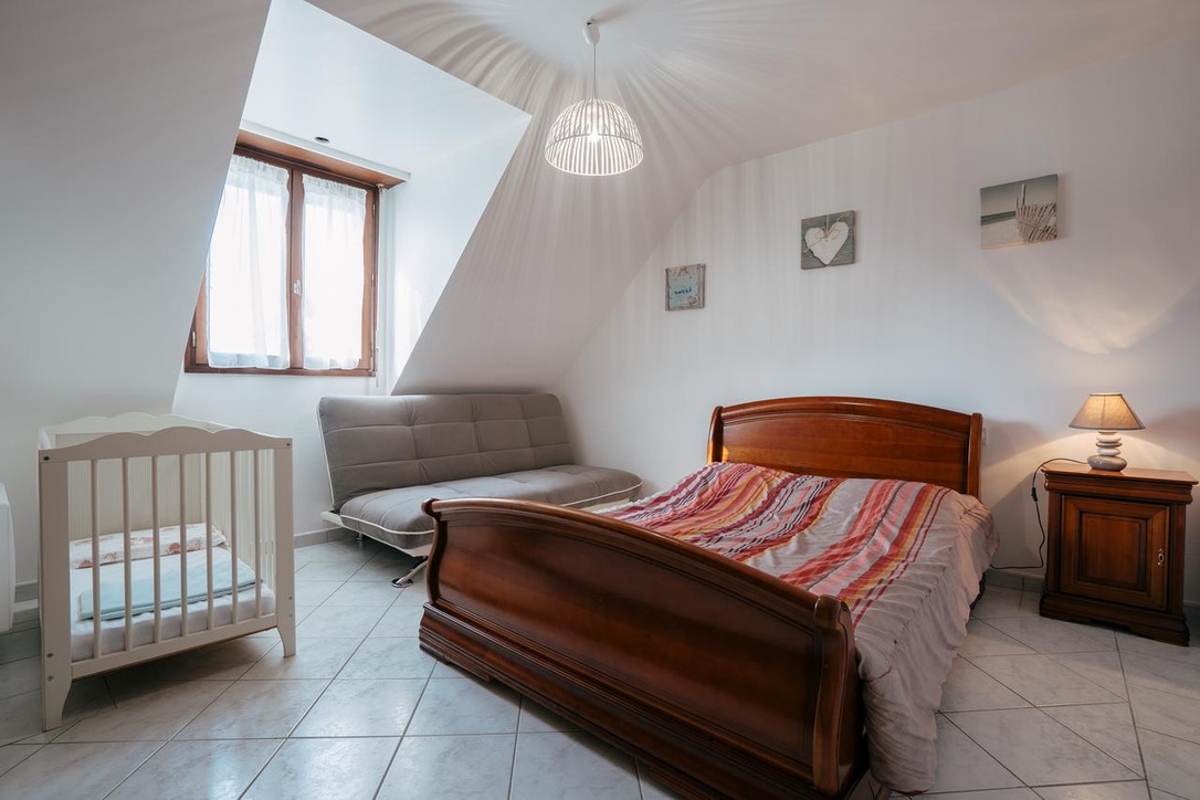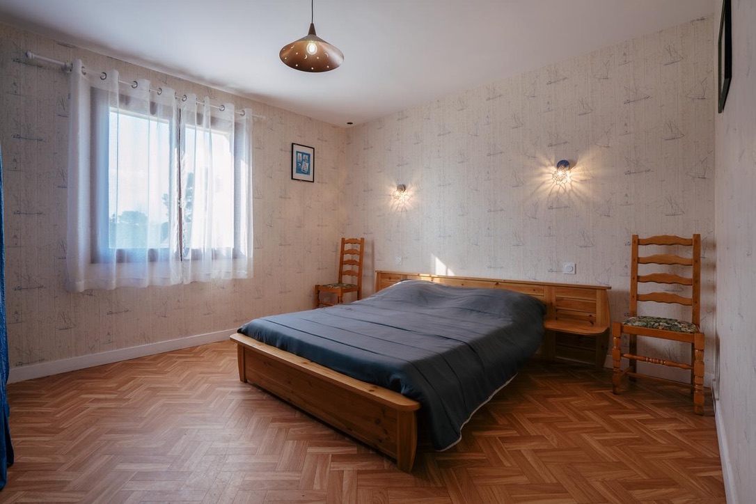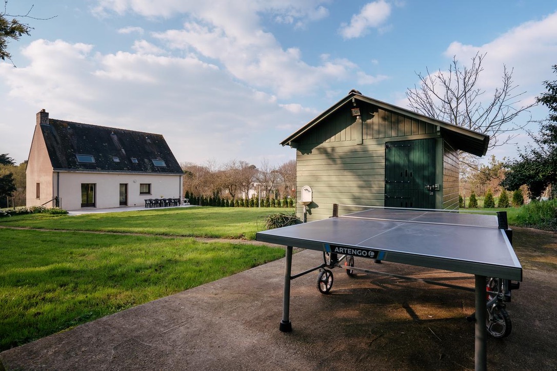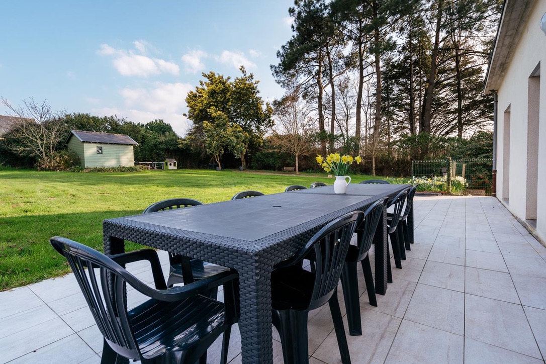 Grande maison de 200m2 sur un terrain de 1500m2 à 300m de la grande plage de sable fin de Pont-Mahé, en pente douce, idéale pour les enfants.