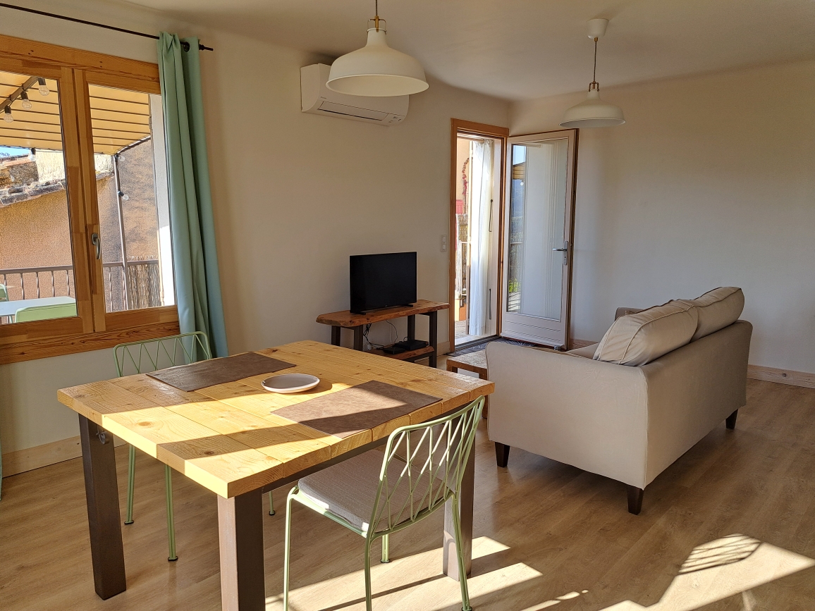 La maison comprends une pièce principale ensoleillée avec une cuisine toute équipée dont le lave vaisselle, un salon avec un canapé et une télévision et wifi haut débit gratuit, un bureau. Une chambre avec un lit en 160×200, un placard et un bureau. Une salle de bain avec une douche à l’italienne, une coiffeuse et un placard, une buanderie avec WC, climatisation et chauffage.