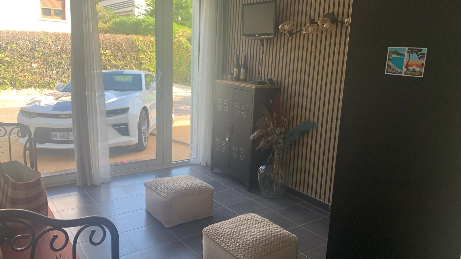 Au rez-de-chaussée une cuisine avec coin repas type bistrot, une buanderie avec lave linge.Un salon avec télévision.