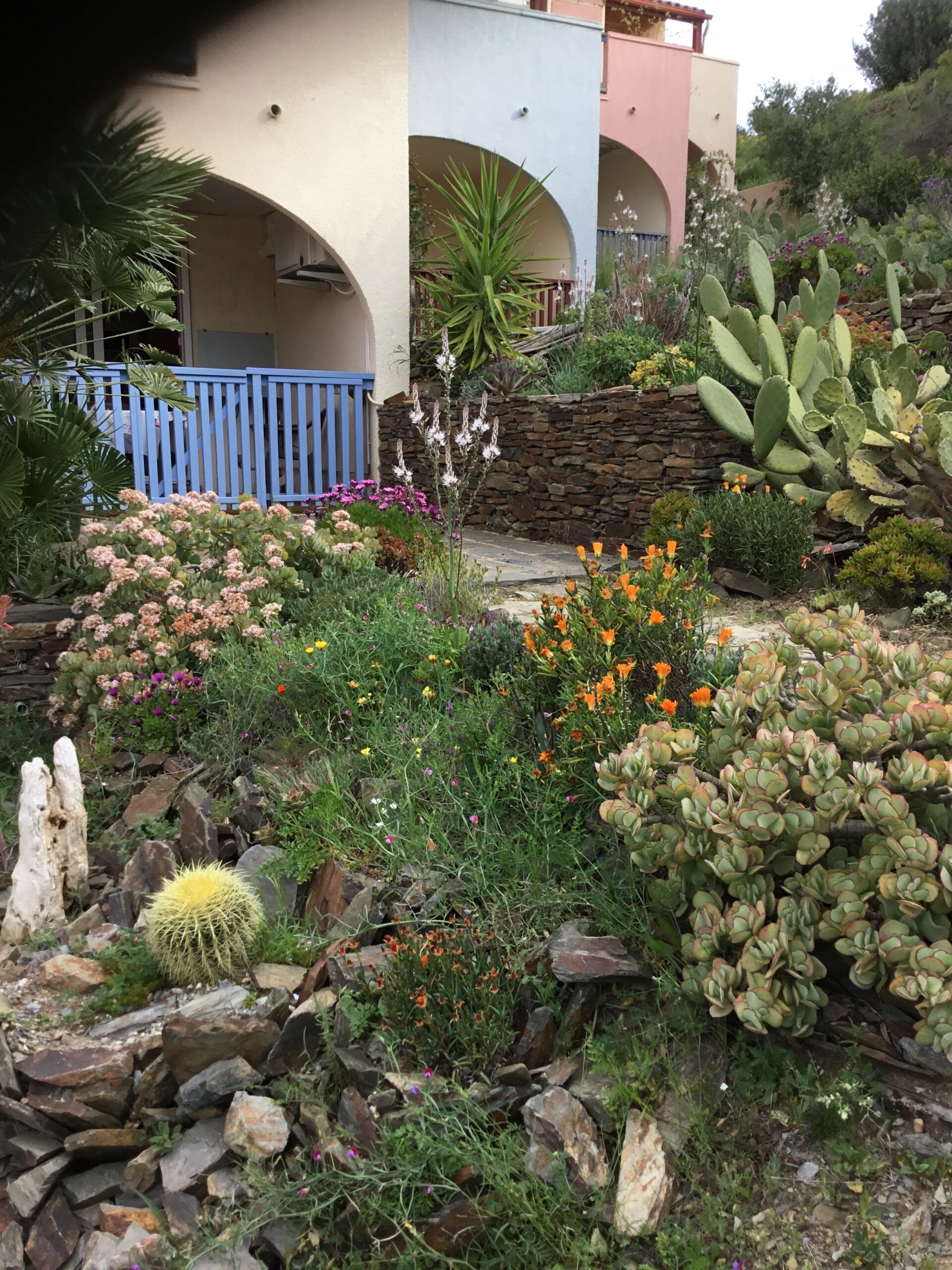 La location est insere dans un écrin de jardin paysager composé de cactus, de plantes mediteraneenes et de fleurs de montagne.