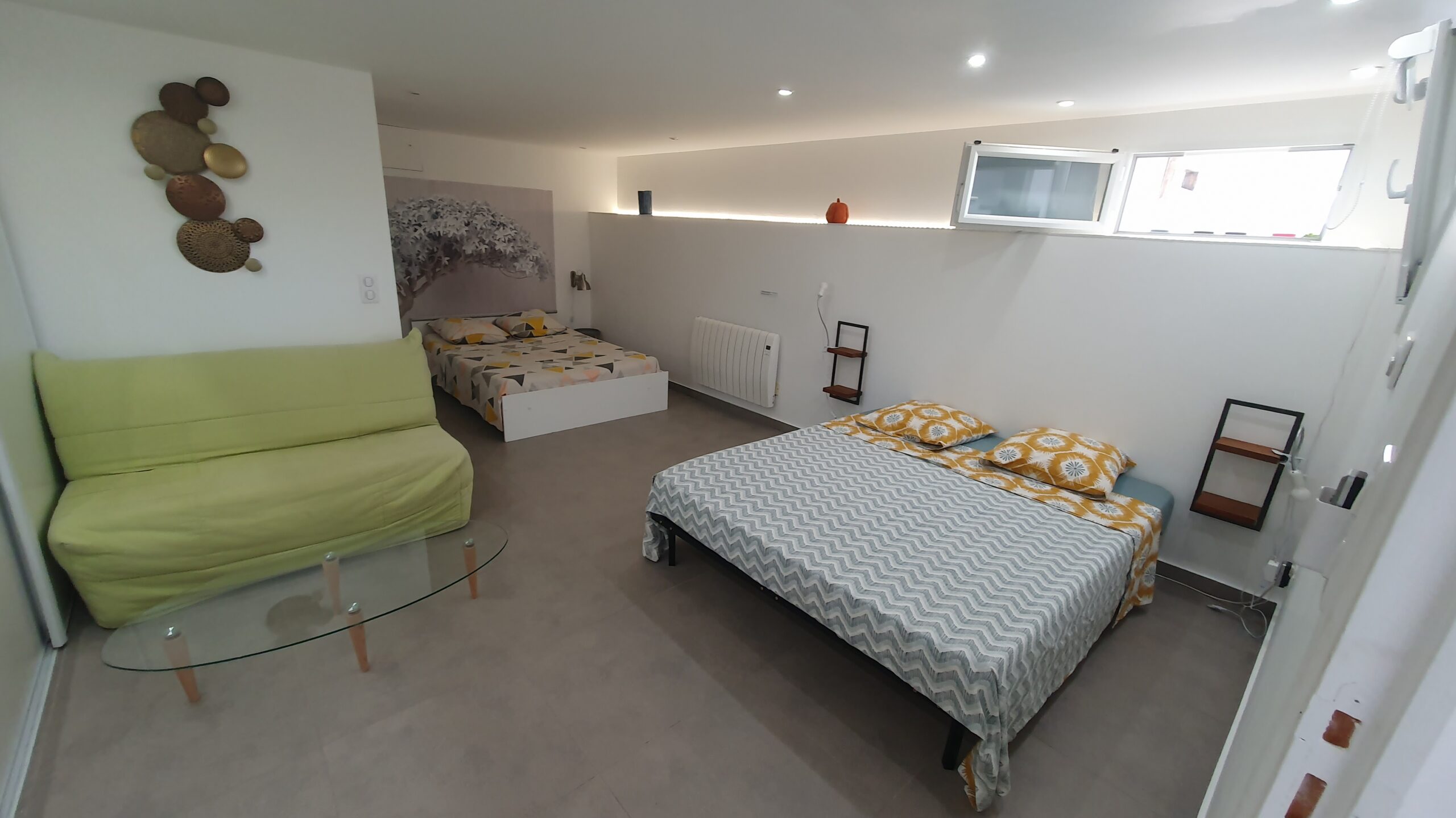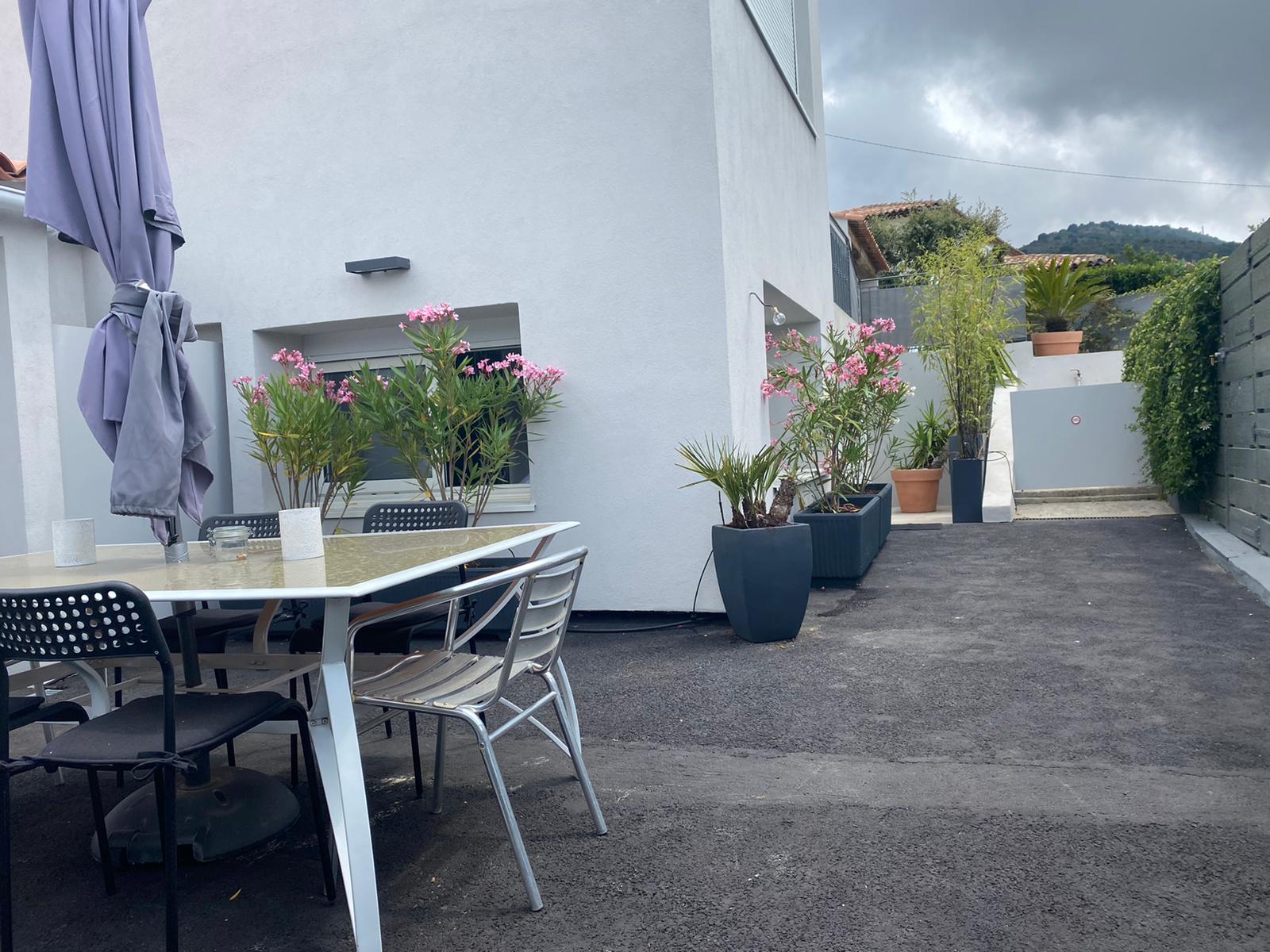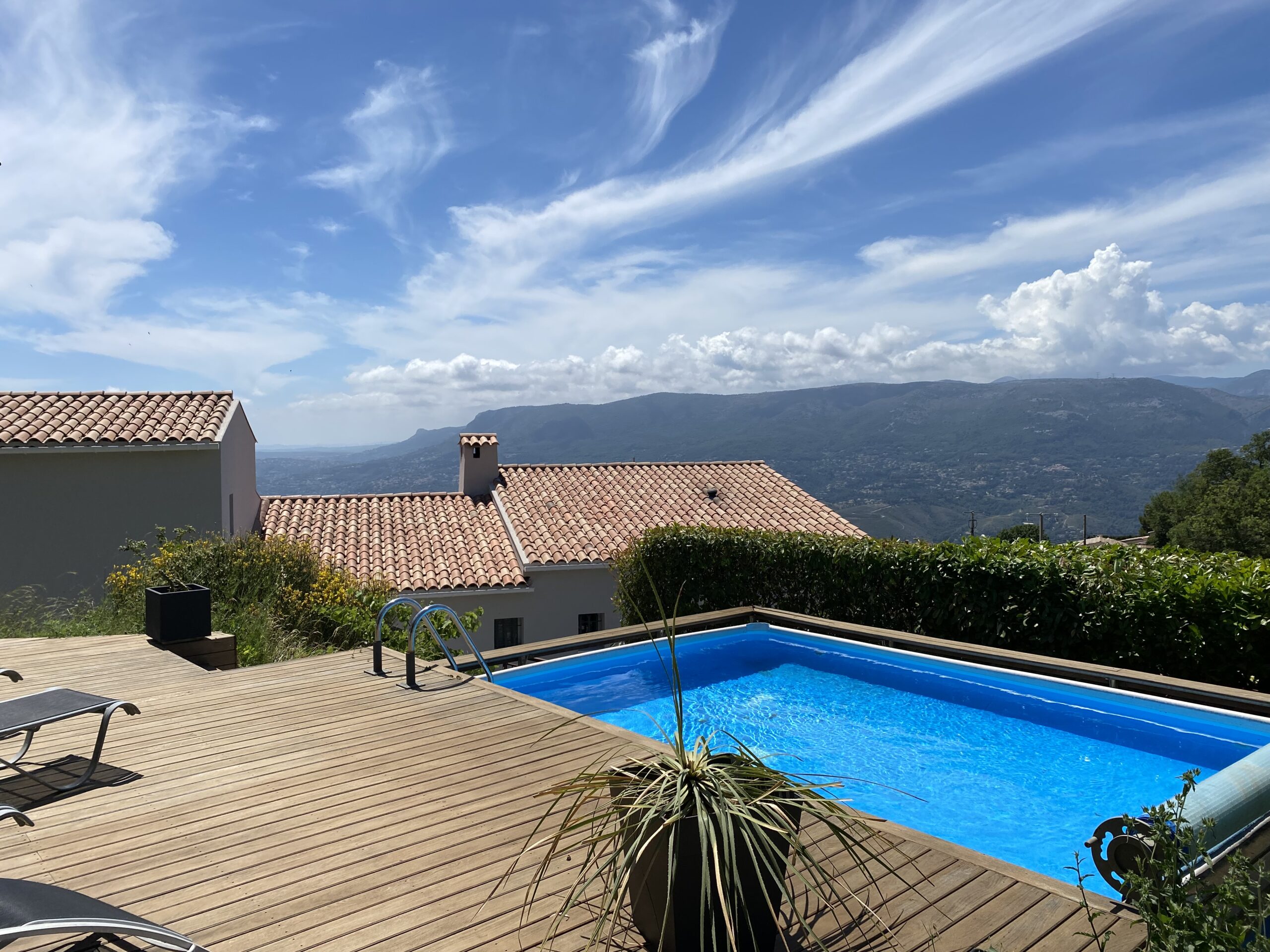 Calme et fraicheur DES COLLINES, 13 km (20mn) de Nice et de ses plages. 2 Places de parking, 1 chambre double (séparation par rideau) comprenant 2 lits 140×200,une salle de douche lavabo et un wc. Ch.2 de 30 m² avec un lit 140×190 et un lit 160×200 et une salle de bains avec douche, lavabo et wc. 1 excellent canape dans salon 140×200. Accès à la piscine hors sol (5.50×4)aux locataires de 10h à 18h uniquement en été. terrasse 41m².