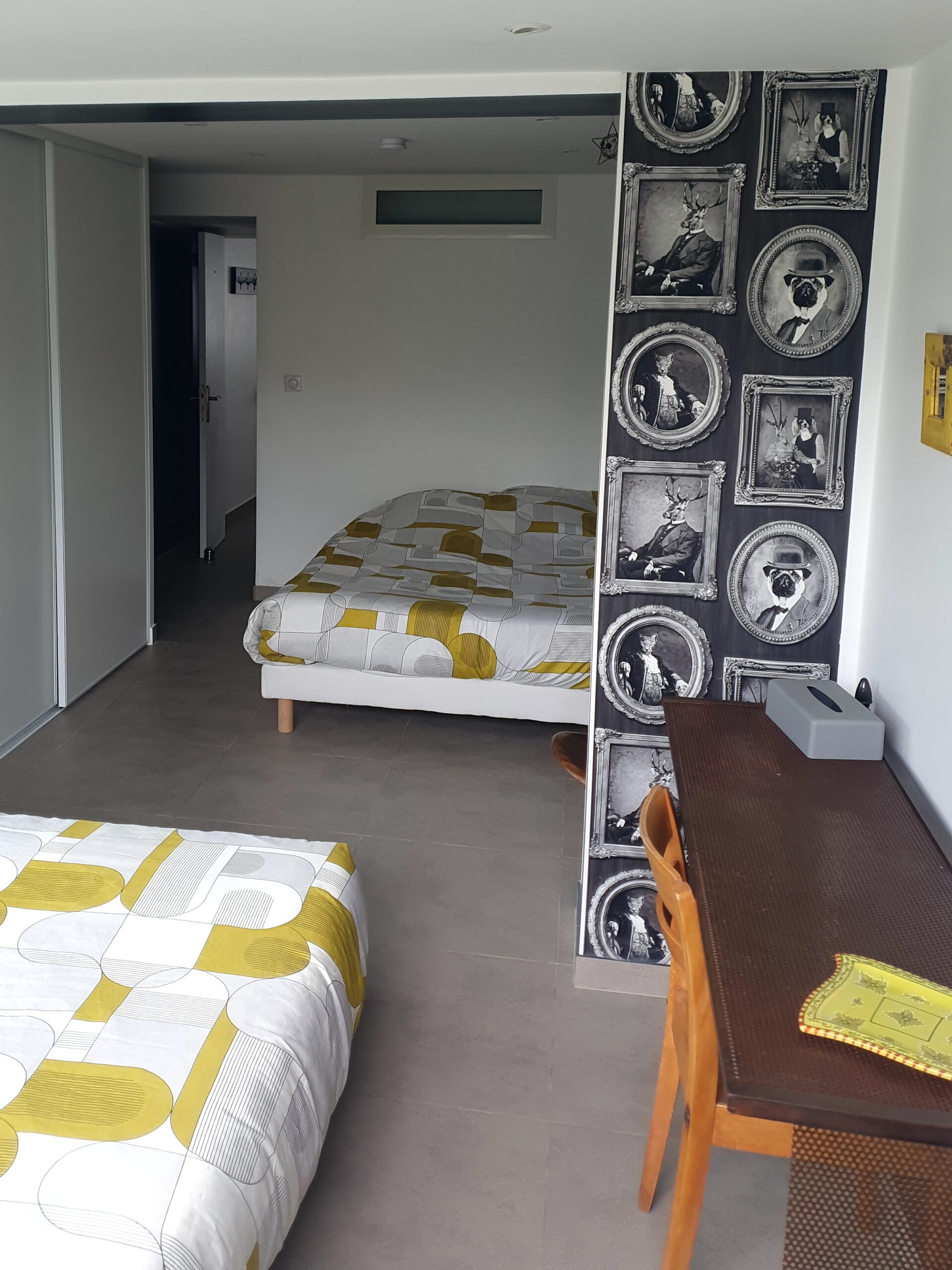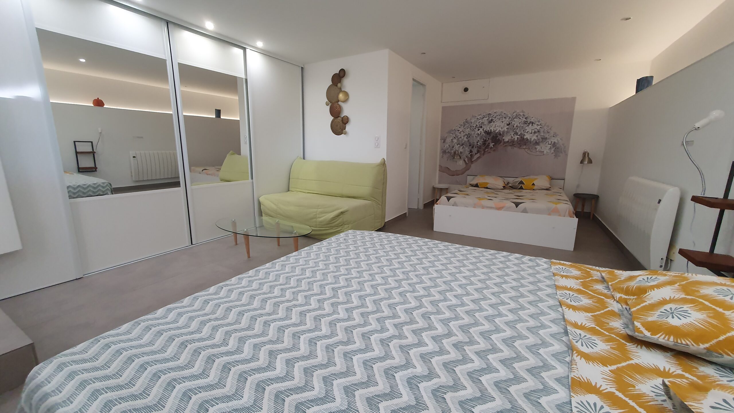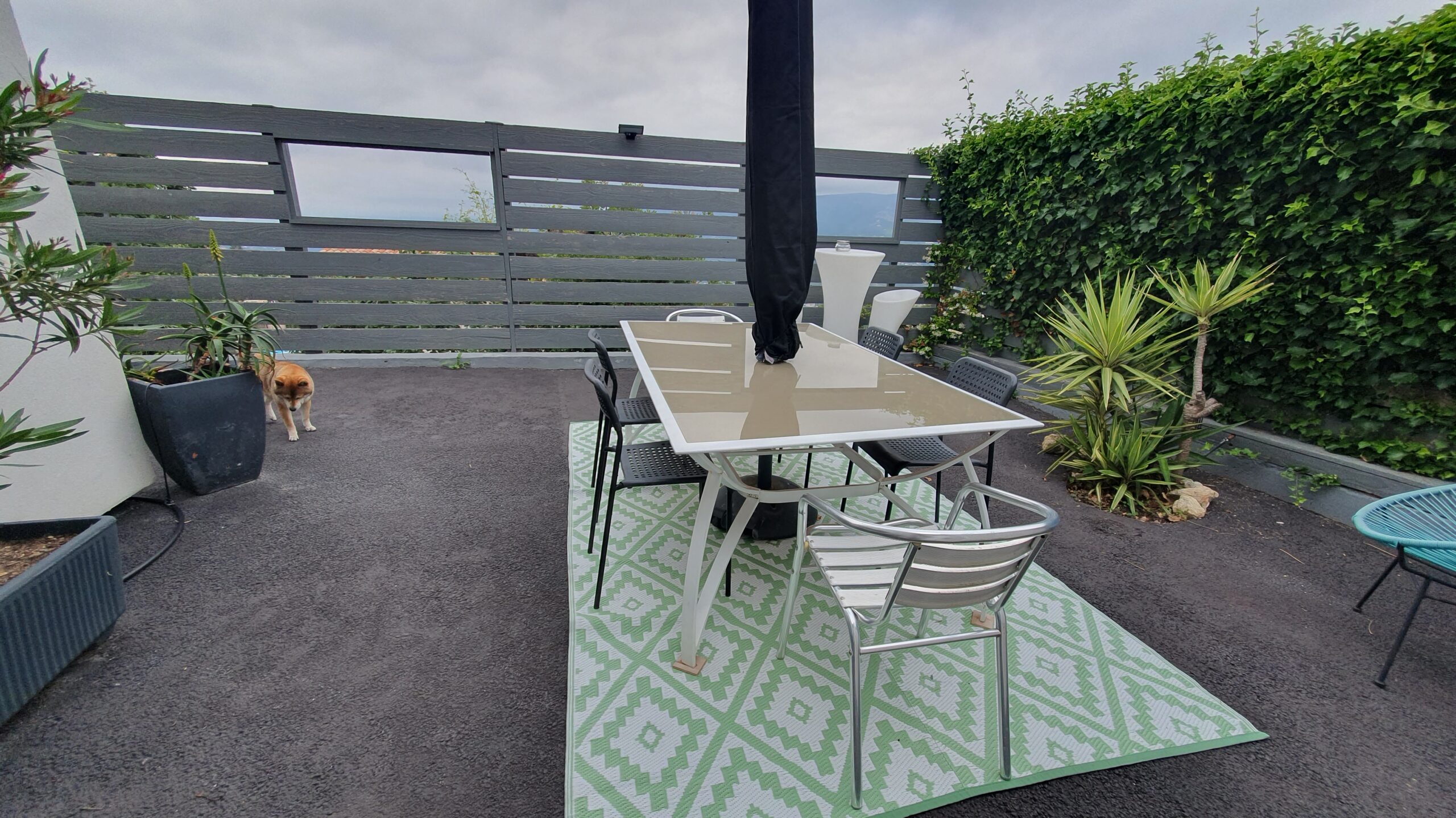 Calme et fraicheur DES COLLINES, 13 km (20mn) de Nice et de ses plages. 2 Places de parking, 1 chambre double (séparation par rideau) comprenant 2 lits 140×200,une salle de douche lavabo et un wc. Ch.2 de 30 m² avec un lit 140×190 et un lit 160×200 et une salle de bains avec douche, lavabo et wc. 1 excellent canape dans salon 140×200. Accès à la piscine hors sol (5.50×4)aux locataires de 10h à 18h uniquement en été. terrasse 41m².