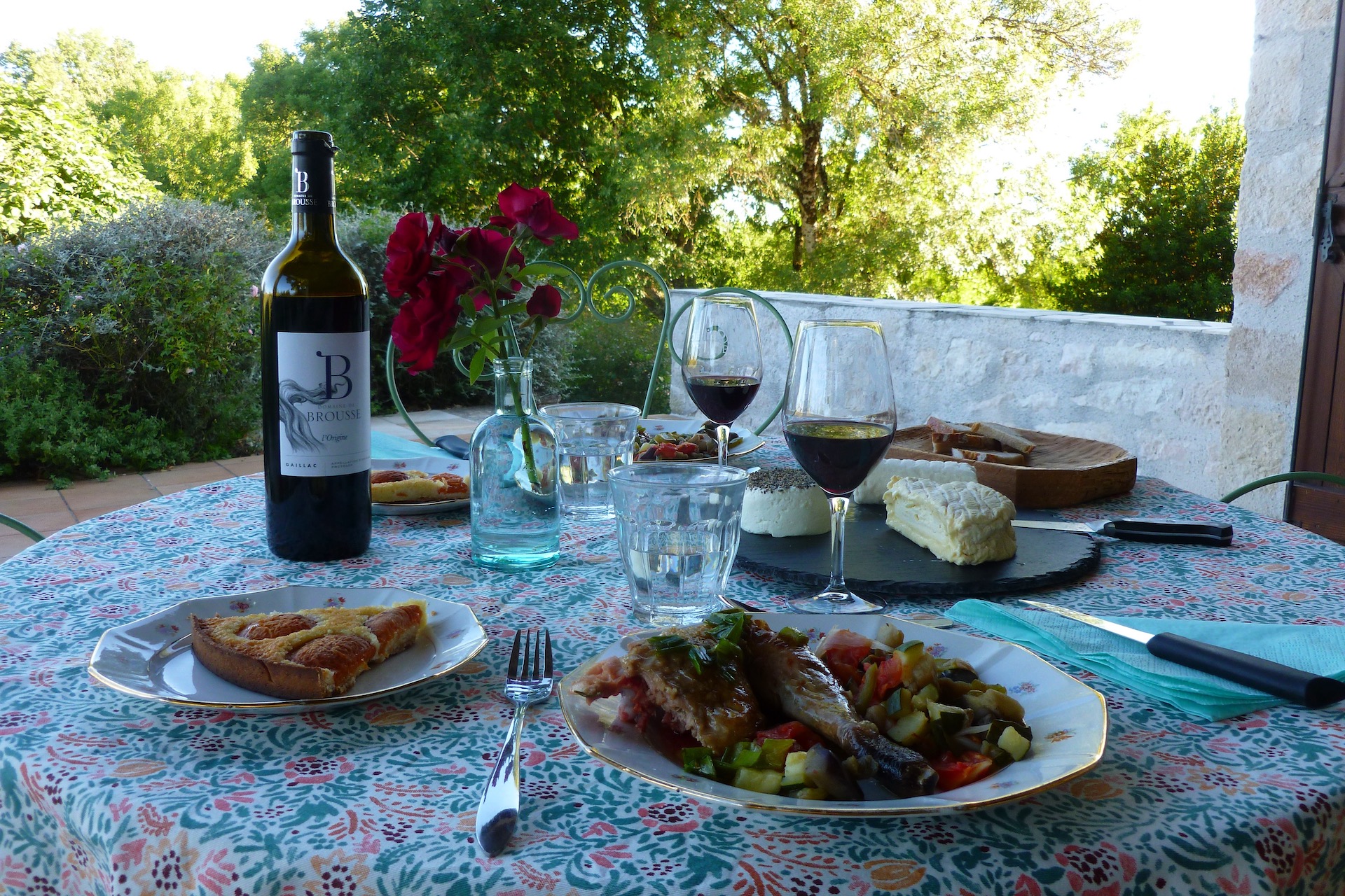 Et après une journée de repos à Pechingorp, de randonnées à pied, à vélo ou à cheval, de visites des bastides de la région ou des caves de nos amis viticulteurs, je peux vous proposer une table d’hôte ( sur réservation à 28 euros ) cuisinée à partir de produits frais, locaux et bio au frais de la terrasse. Vous pourrez alors finir la soirée en douceur en admirant le ciel étoilé et sait on jamais faire un voeu au passage d’une étoile filante.