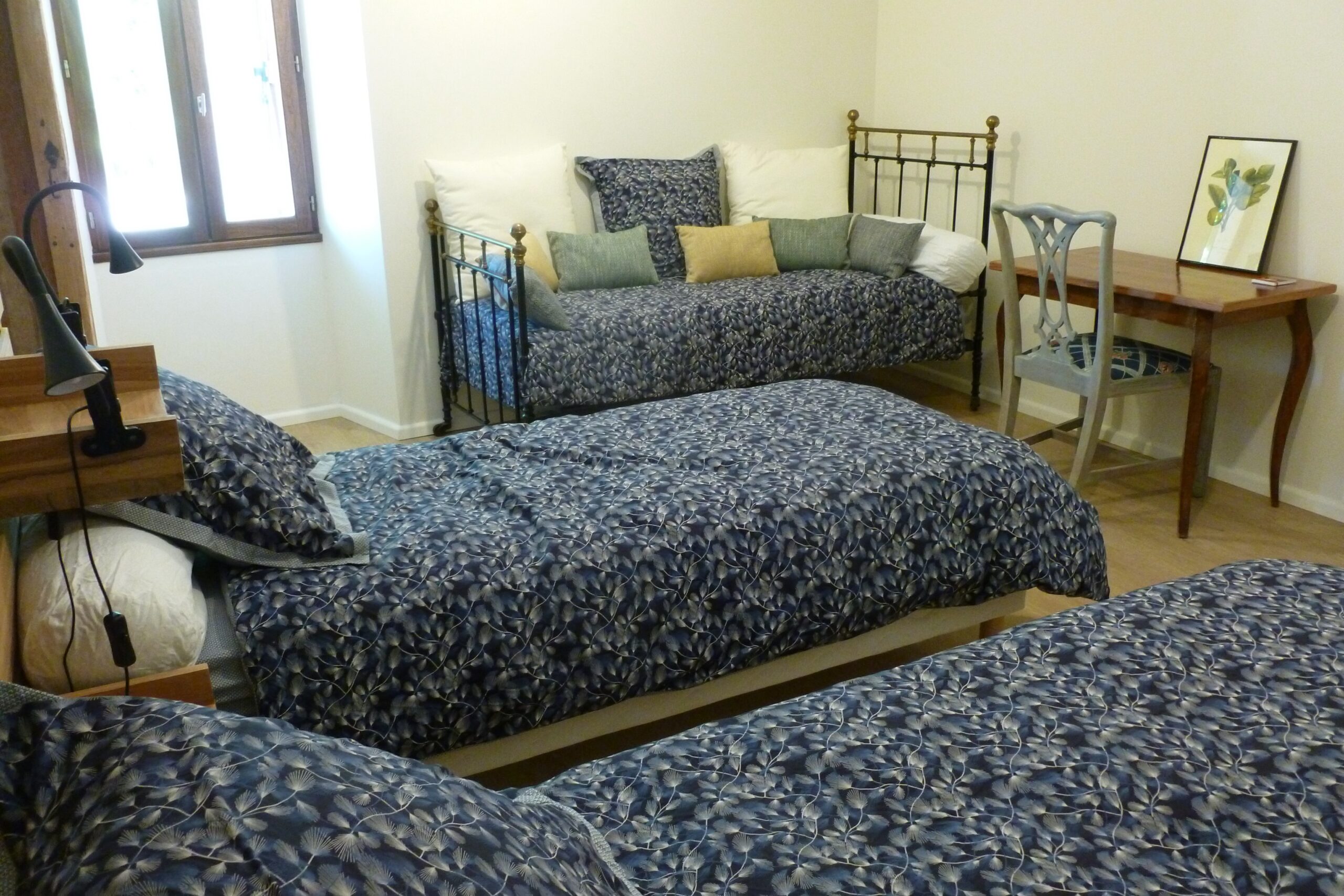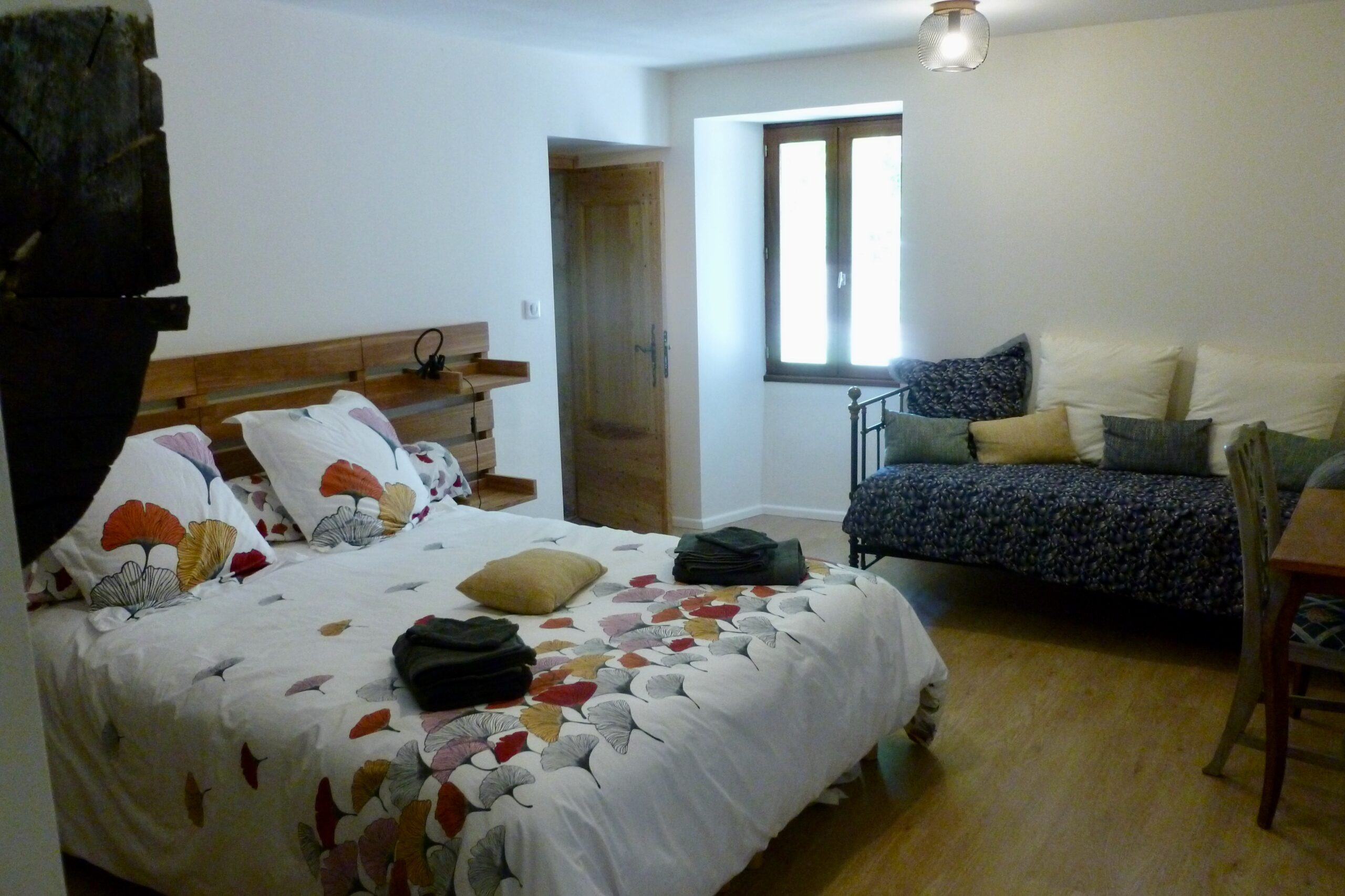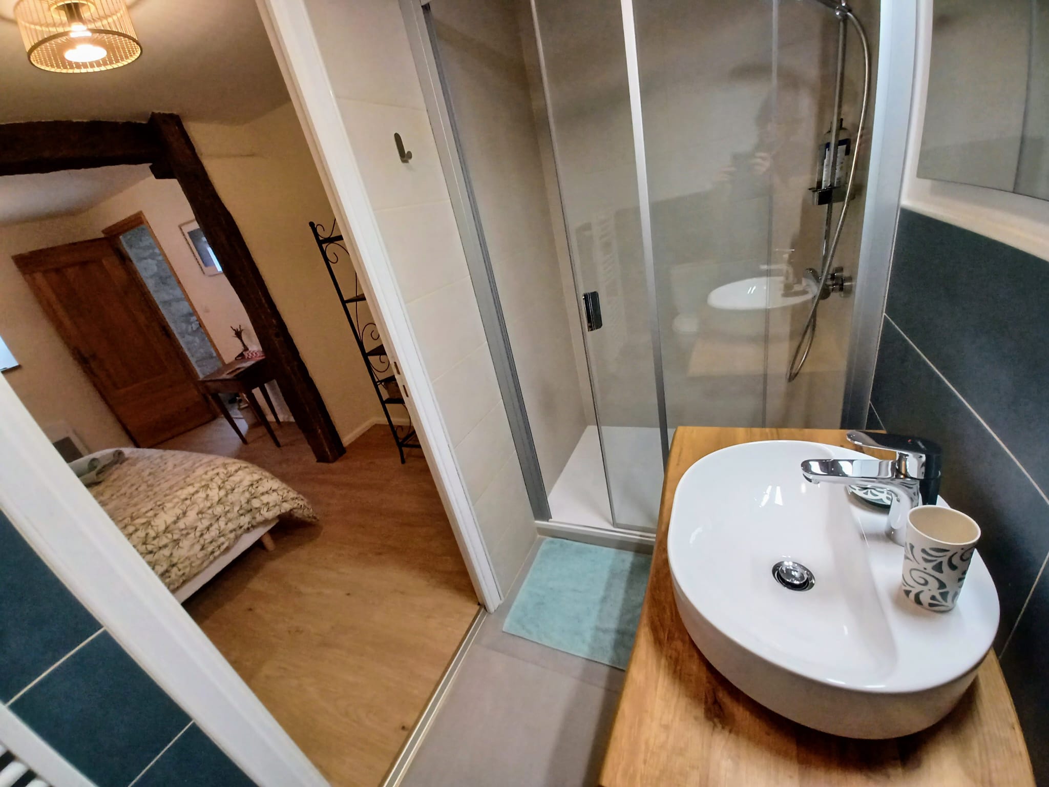 Le gite au rez-de-chaussée de chaussée de notre maison (entrée indépendante) comprend 2 chambres avec chacune leur salle de bain privative, la chambre Tilleul a un lit Queen size et peut accueillir 2 personnes, la chambre Yggdrasil peut accueillir jusqu’à 3 personnes ( Soit 1 lit Queen size et 1 lit 80*190 ou 3 lits 80*190) et une cuisine/salon.