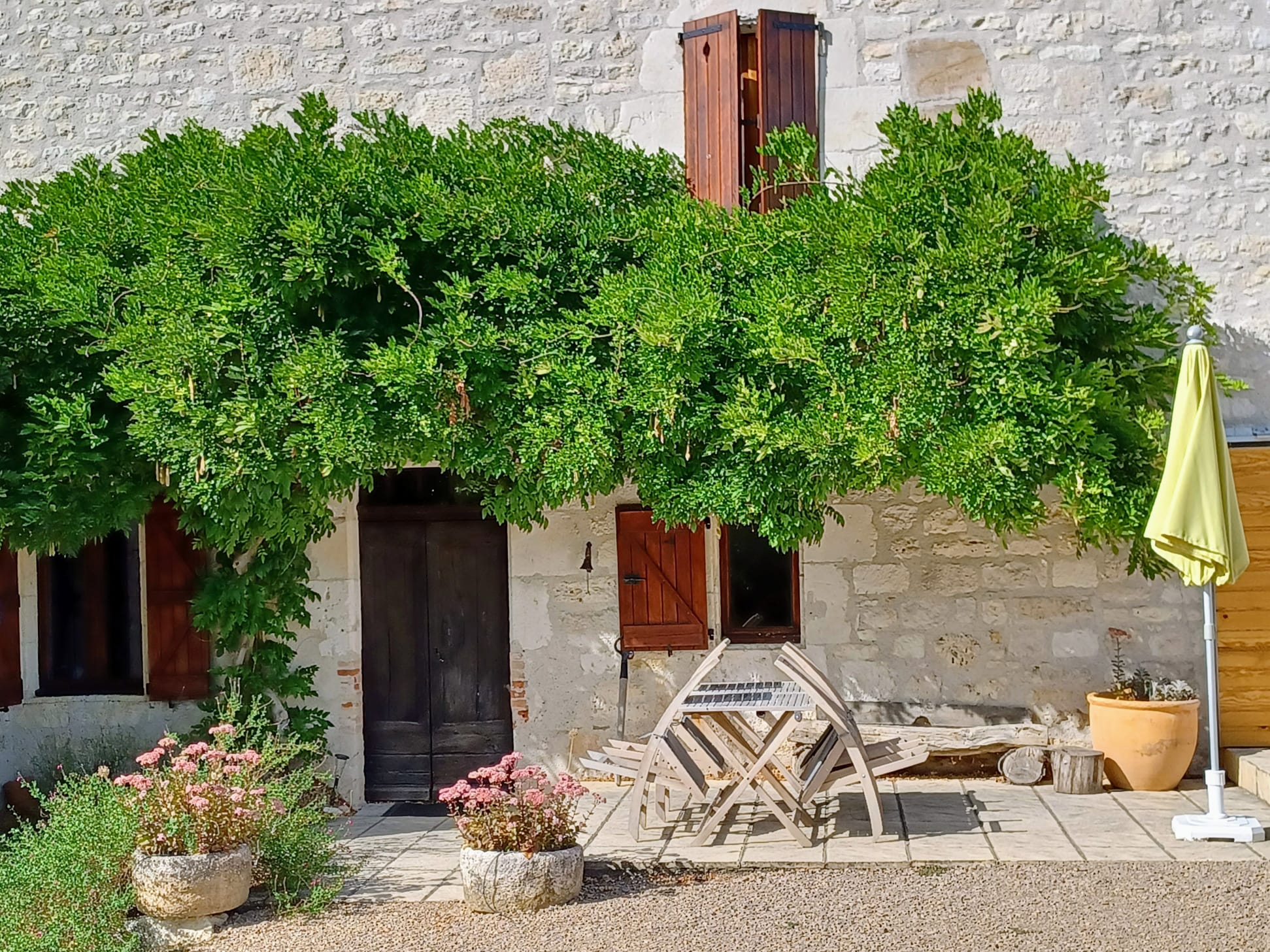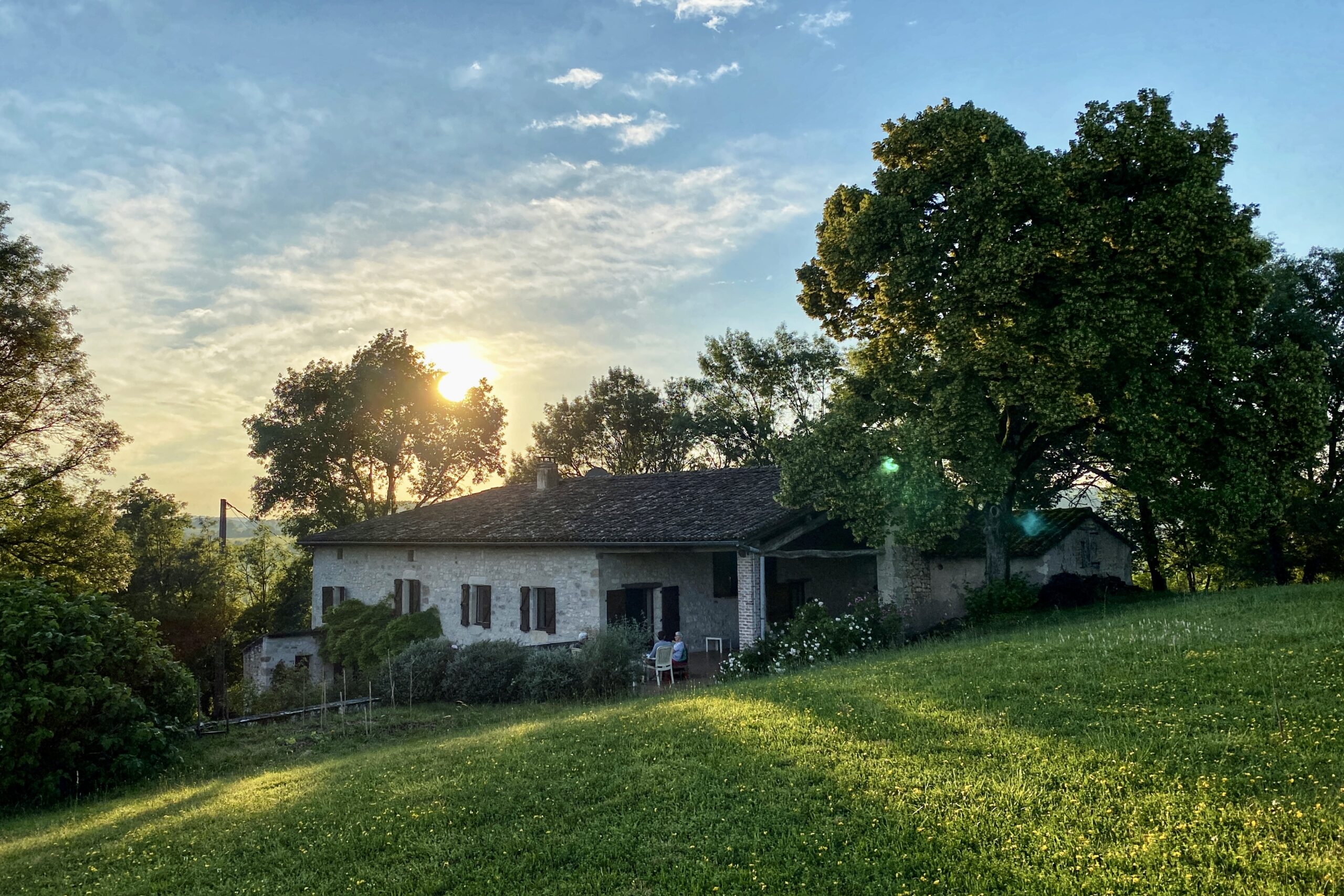 Cette ancienne ferme du début des années 1800 est au sommet d’un « pech » ( colline en occitan ) au coeur d’un terrain de 5 000 m2 magnifiquement arboré de tilleuls, frênes, chênes, noyer, pruniers. La vue à 360° vous permet d’admirer les vignes, les collines au loin et les hameaux voisins.